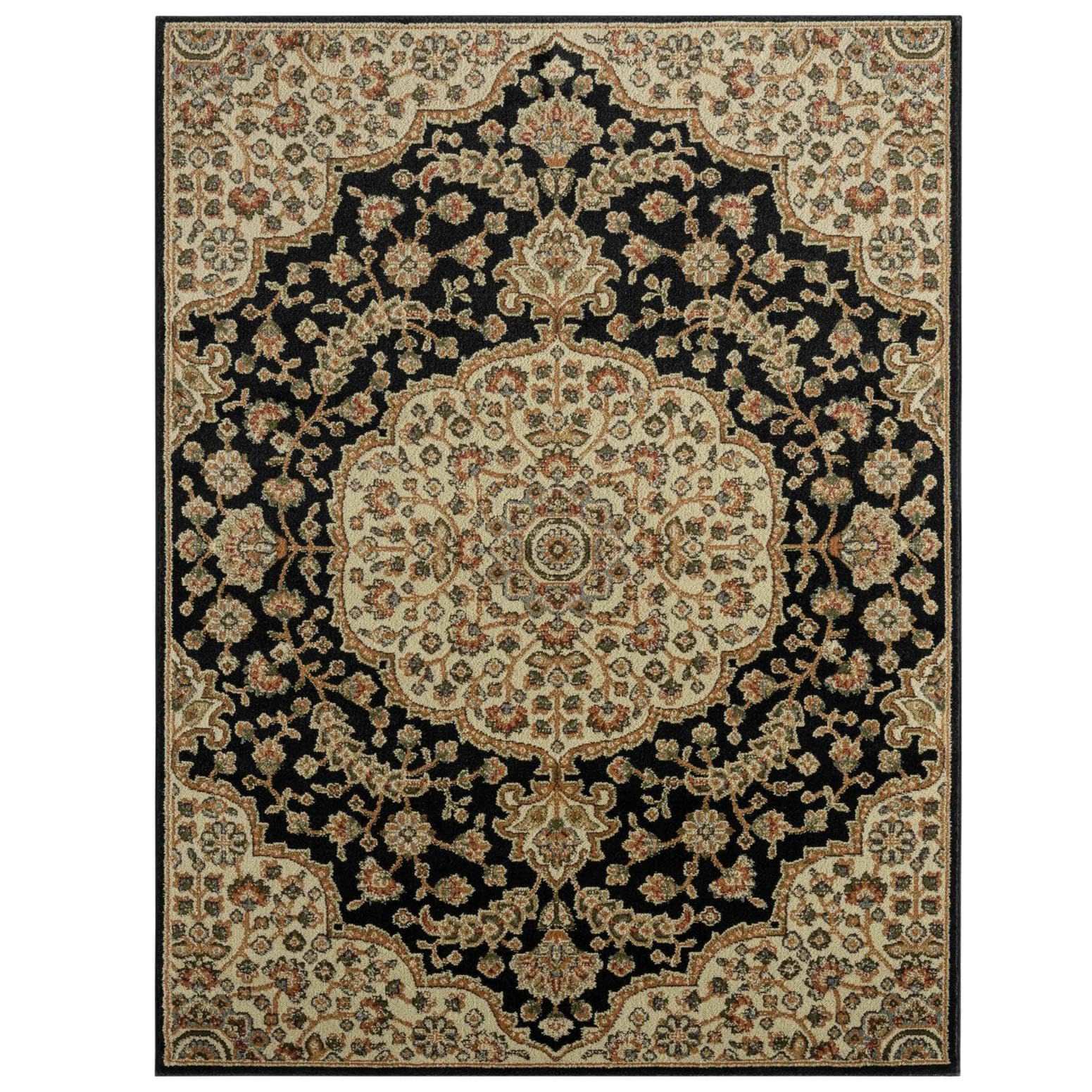 Update your space with the classic Royalty Medallion area rug from Home Dynamix. With a traditional medallion motif in black and ivory, this area rug offers an upscale, stylish look that complements both traditional and transitional decors. Super soft to the touch, the durable, power-loomed, heat-set polypropylene yarns are fade-resistant, stain-resistant, and easy to clean, making this rug ideal for high traffic areas. A jute backing helps your rug keep its shape and beauty over time.
