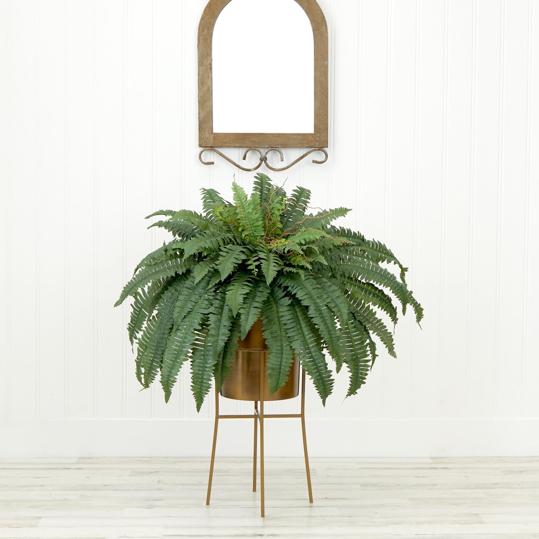 32" Artificial Boston Fern Plant with Metal Planter Stand DIY
