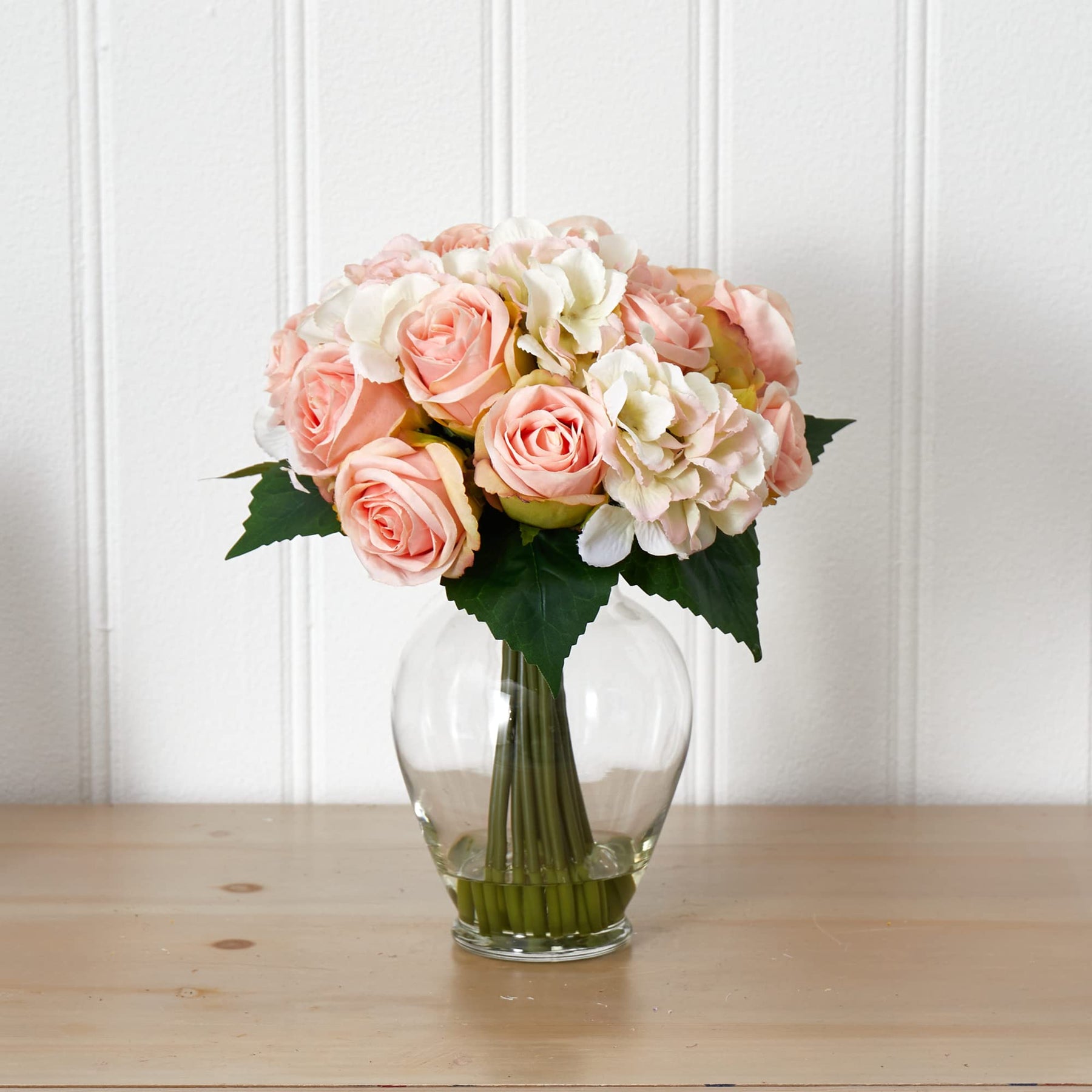 Nearly Natural Rose and Hydrangea Bouquet Artificial Arrangement