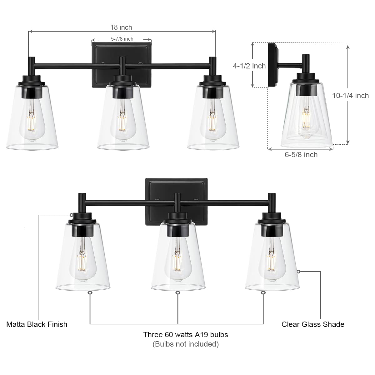 Eurus Home 3-Light Bathroom Vanity Light Fixture Matte Black Wall