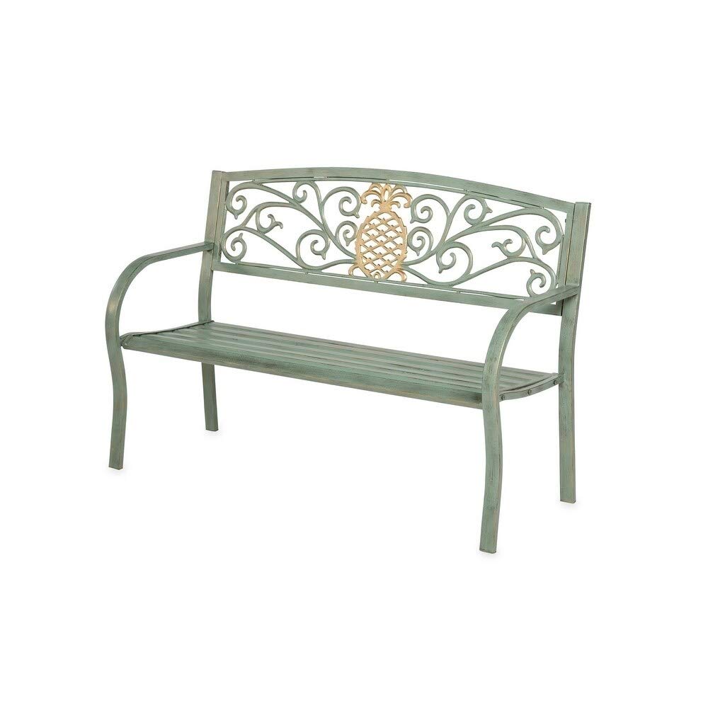 Pineapple Metal Garden Bench Green Aluminum Backed | Material Info: Aluminum. Bench type : Garden Bench. Assembly : Assembly Required. Color : Green | Product Size : 21.0 In. X 50.0 In. X 33.6 In.
