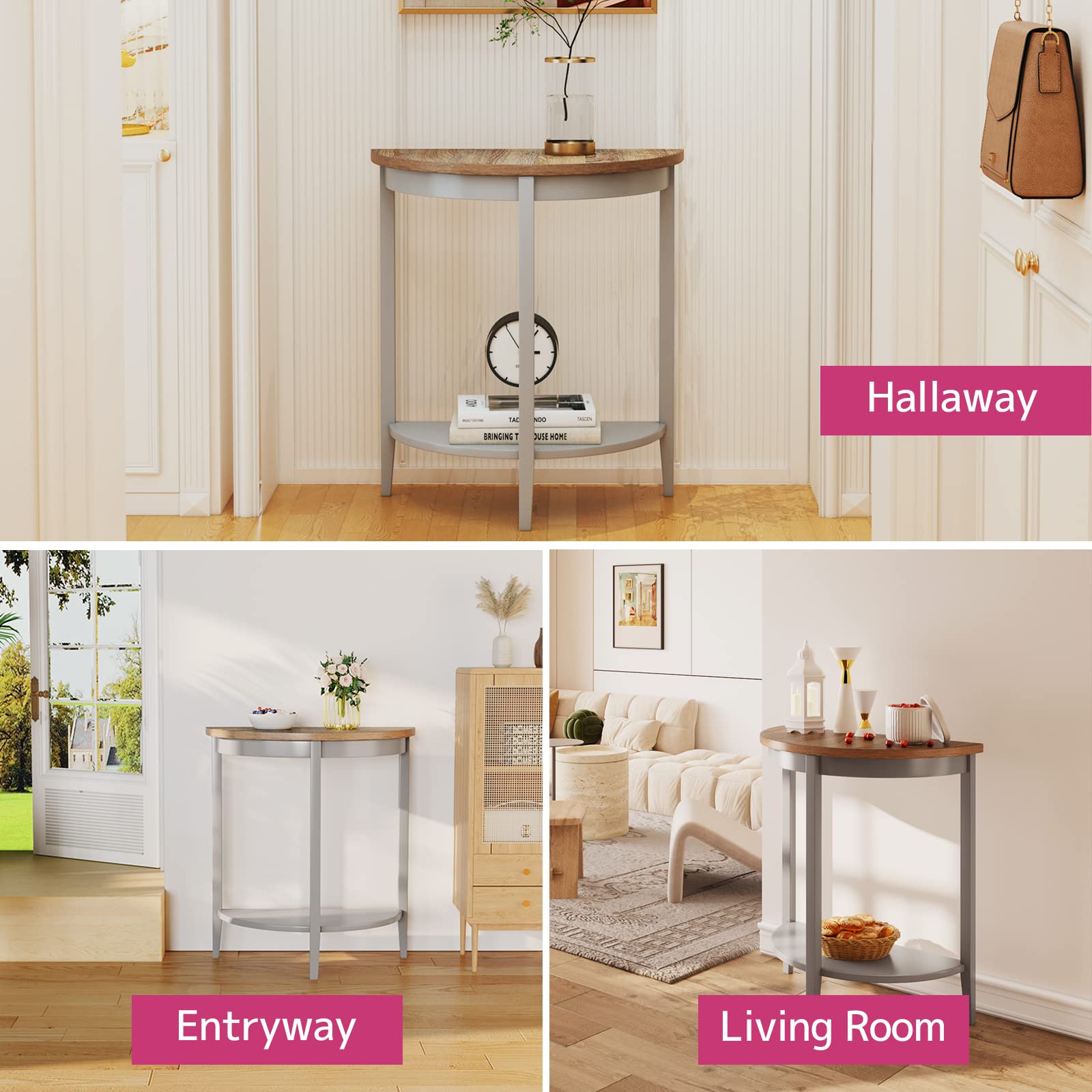 Acme Justino Half Moon Wooden Console Table with Bottom Shelf