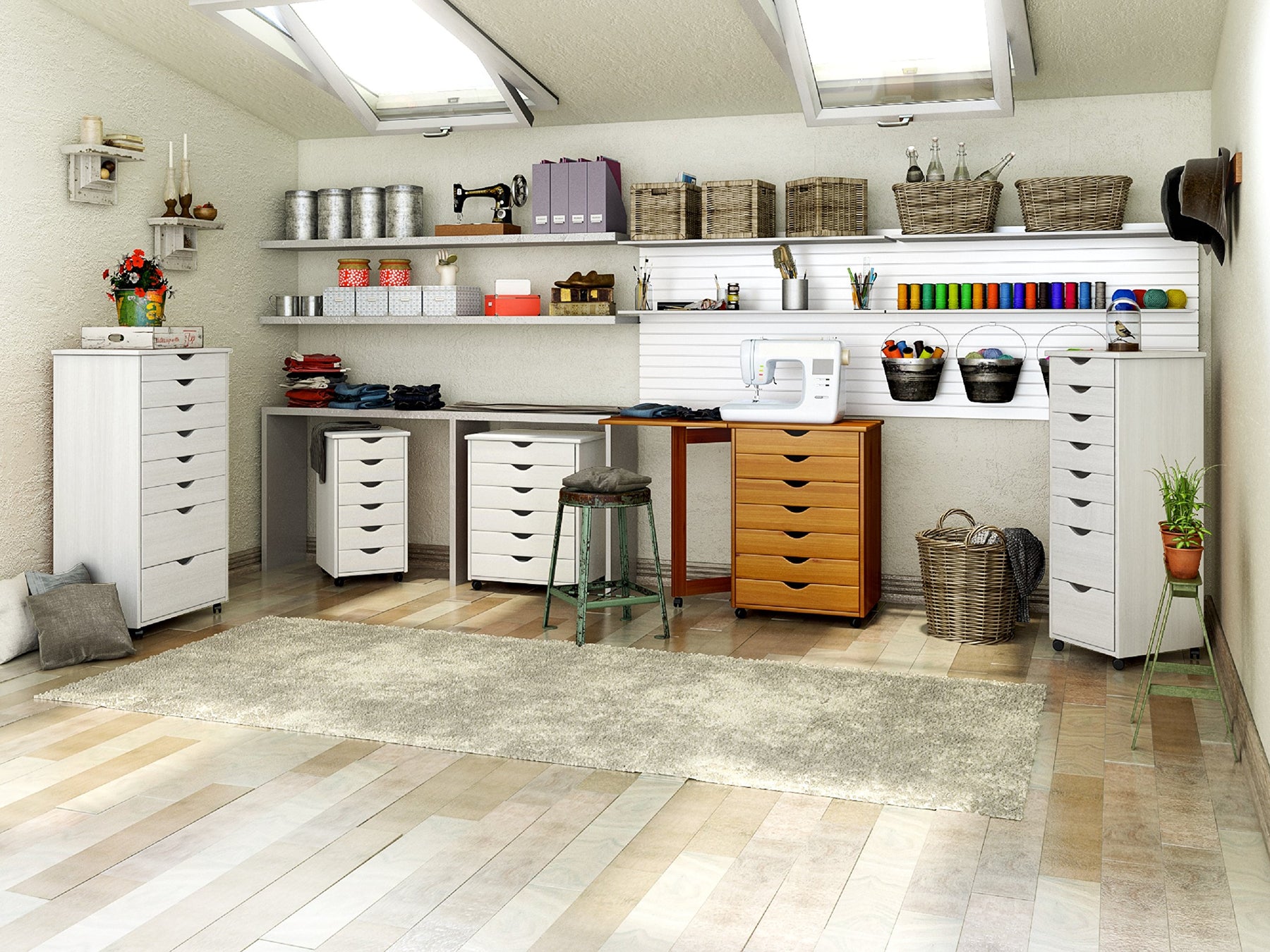 Multi-purpose storage on wheels is suitable for any room in the home | Six drawers 3.25", and two drawers 6.5" deep accommodate most crafting and art supplies. All drawers are completely removable to use as trays, making your supplies readily available and easily visible, keeping every project organized | Drawer width allows for storage of a full ream of tabloid sized paper or two letter sized paper. Unit can roll under a desk to maximize space or double as a side table | Made of wood harvested from sustainable pine forests. For every Tree Cut, two are planted | 40.2 H x 20.75 W x 15.4 D