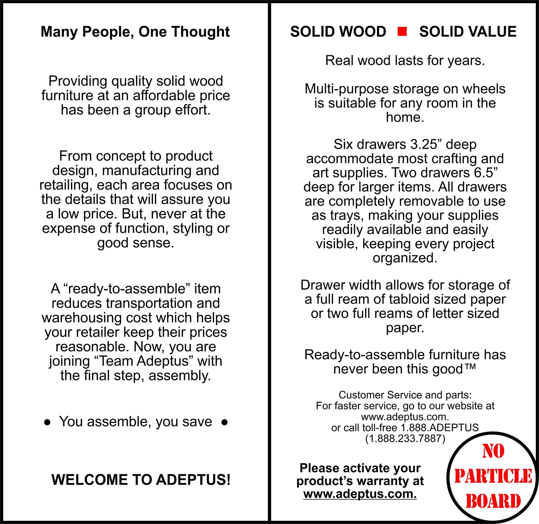 Providing quality solid wood furniture at an affordable price has been a Group effort. From concept to product design, manufacturing and retailing, each area focuses on the details that will assure you a low price. But never at the expense of function, styling, or good sense. Solid wood alternative to plastic storage. Ideal for crafters to organize smaller items. Sourced from sustainable pine plantations; for every tree cut, there are two trees planted. Back panels and drawer bottoms are Hardboard. Casters are non-locking
