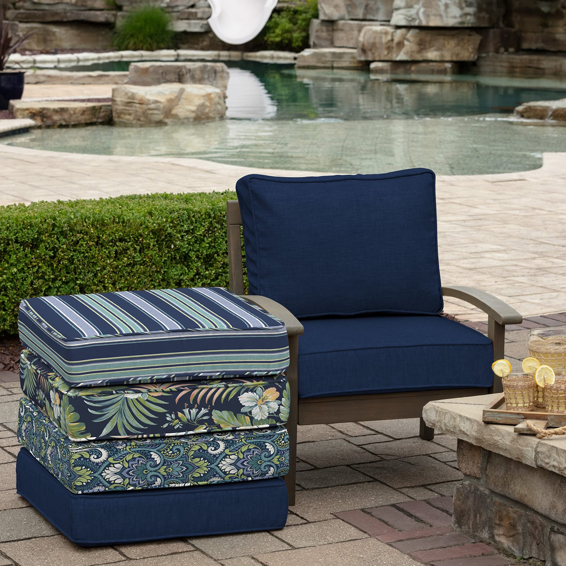 This Arden Selections ProFoam Outdoor Plush Deep Seat Cushion Set is made with the same high-performance, long-lasting, durable foam that came with your outdoor furniture set. These firm, yet comfortable outdoor foam patio cushions have a sleek and modern look, adding clean lines to refresh your outdoor furniture. The two pieces of foam come in compressed rolls to reduce shipping waste and easily slip into the provided cushion covers. This deep seat set comes with an interchangeable back and bottom cushion that give two very different, yet distinct and stylish looks. With the clean finish of the double welt, this 100% resilient polyester cushion cover is UV resistant and features a DWR treatment which repels water. The extended UV protection means your fabric will continue looking brighter longer as you enjoy your hours outdoors and comes with a 1-year limited fabric warranty. Easy spot cleaning with soap and water. Arden Selections ProFoam comes in a variety of colors and styles, all with easy to use extra long zippers that make changing your cushion a breeze. Look for our other Arden Selections ProFoam cushion styles to fit all your outdoor furniture needs.