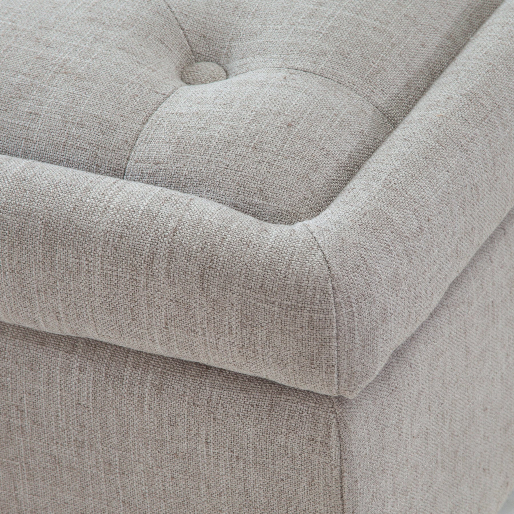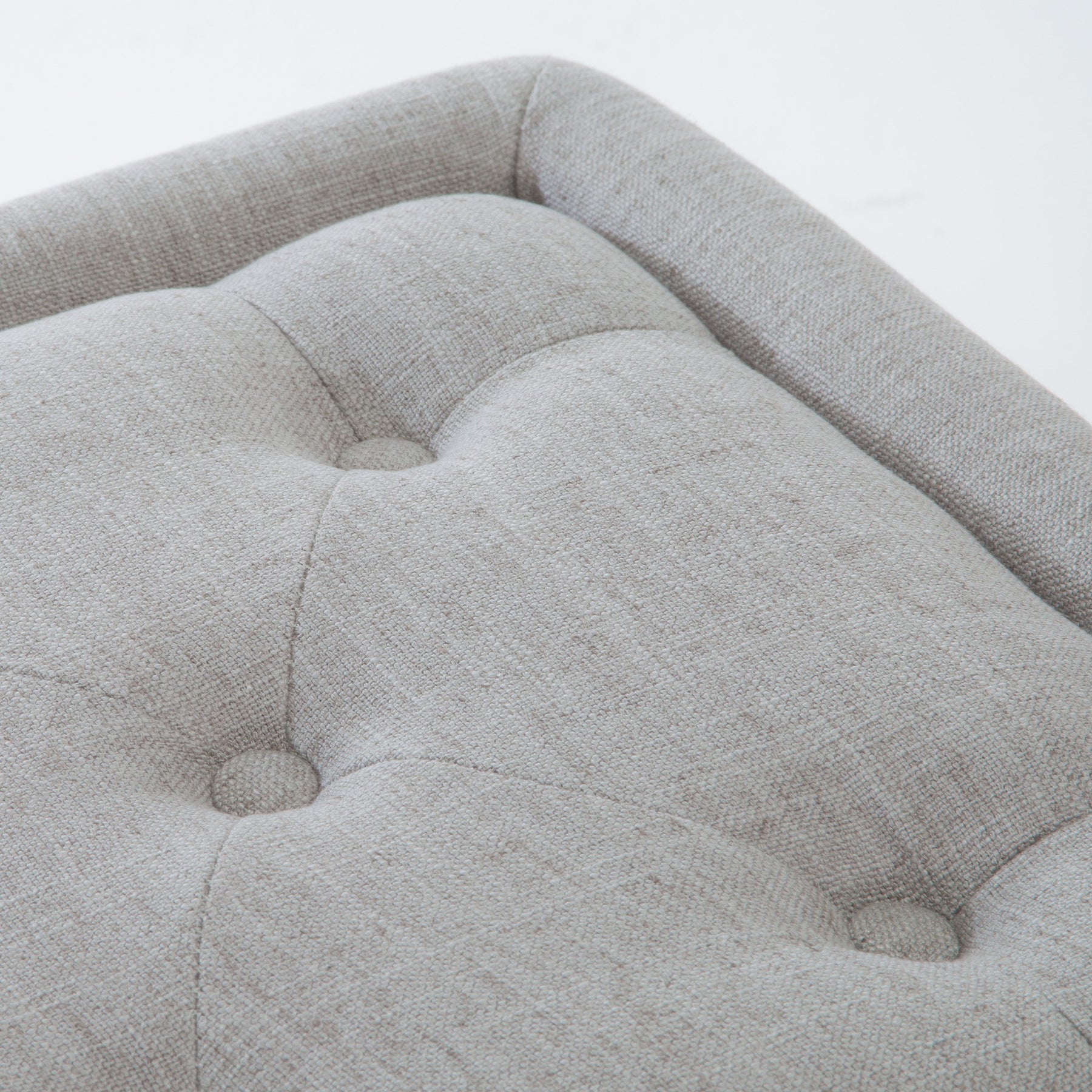 This ottoman is multi-functional with stylish Features. Upholstered in soft fabric, this ottoman has a plush tufted top that is comfortable for sitting and opens to the storage compartment. It also stands on beautifully crafted dark wooden legs, adding to its sophistication. It makes a lovely addition for your Bedroom, living room or office | Dimensions: 19. 25"D x 40. 75"W x 17. 25"H | Colors available in: dark Fuschia, Navy Blue, Pistachio, or grey | Leg Material: Birch | Leg Finish: dark brown | Light assembly required
