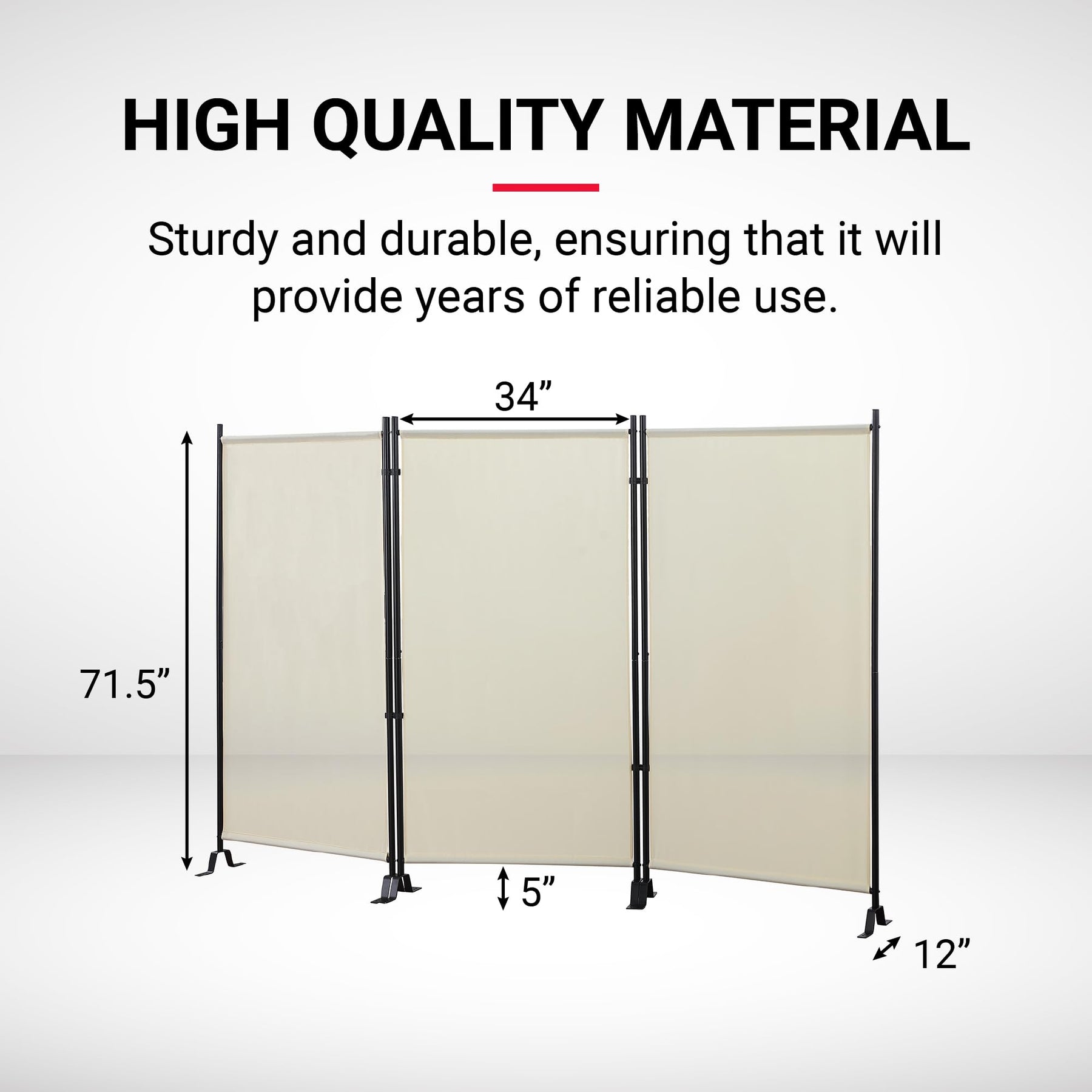 FUNCTIONAL DESIGN: This fabric divider adds a contemporary flair to any room. It has 3 double-hinged panels for flexibility, making it easy to configure in any way that suits your needs. It comes in Grey, Beige, Orange & Black. | VERSATILE: Use this divider for room separation, privacy, or to conceal any unappealing spaces. Made of water-repellent polyester fabric, it’s perfect for indoor or outdoor use. With each panel measuring 34” x 71”, this divider gets any job done. | PREMIUM QUALITY: The high-quality black powder-coated metal frame where the fabric panels lie are built for lasting beauty and use. | STURDY YET LIGHTWEIGHT: This divider is light and easy to move, fold and store. Use it one room for one purpose, and then easily move it to serve another. Dimensions (Max Extend) 102" W x 12" D x 71.5" H, Dimensions (Per Panel) 34" W x 71.5" H | INNOVATE YOUR HOME: Focusing on novel house items, Proman Products offers all kinds of unique furniture, closet organizers, and trendy room dividers to upgrade your living space.
