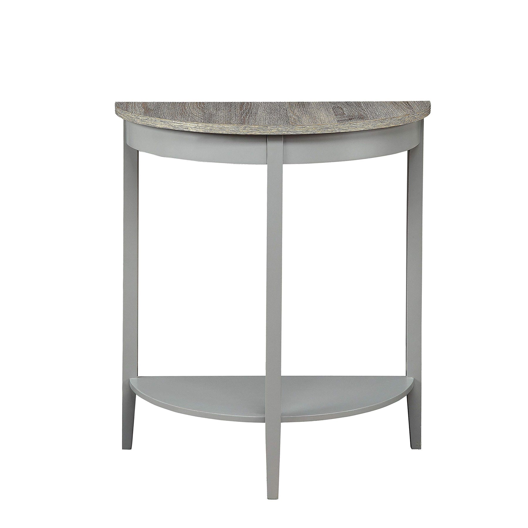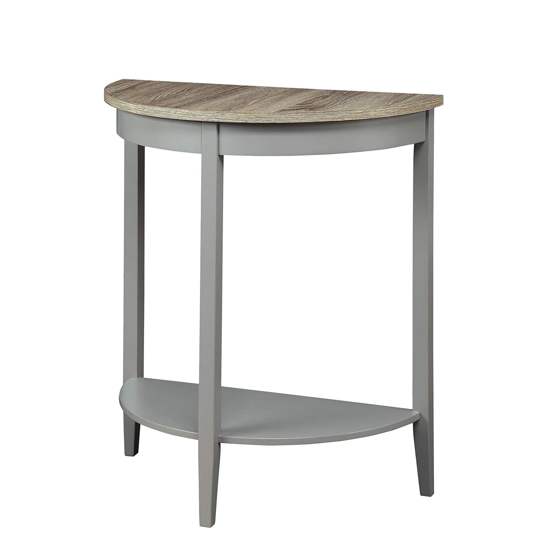 Grey Oak Finish Semi Circle Demilune Table for Small Hallway Entryway Space