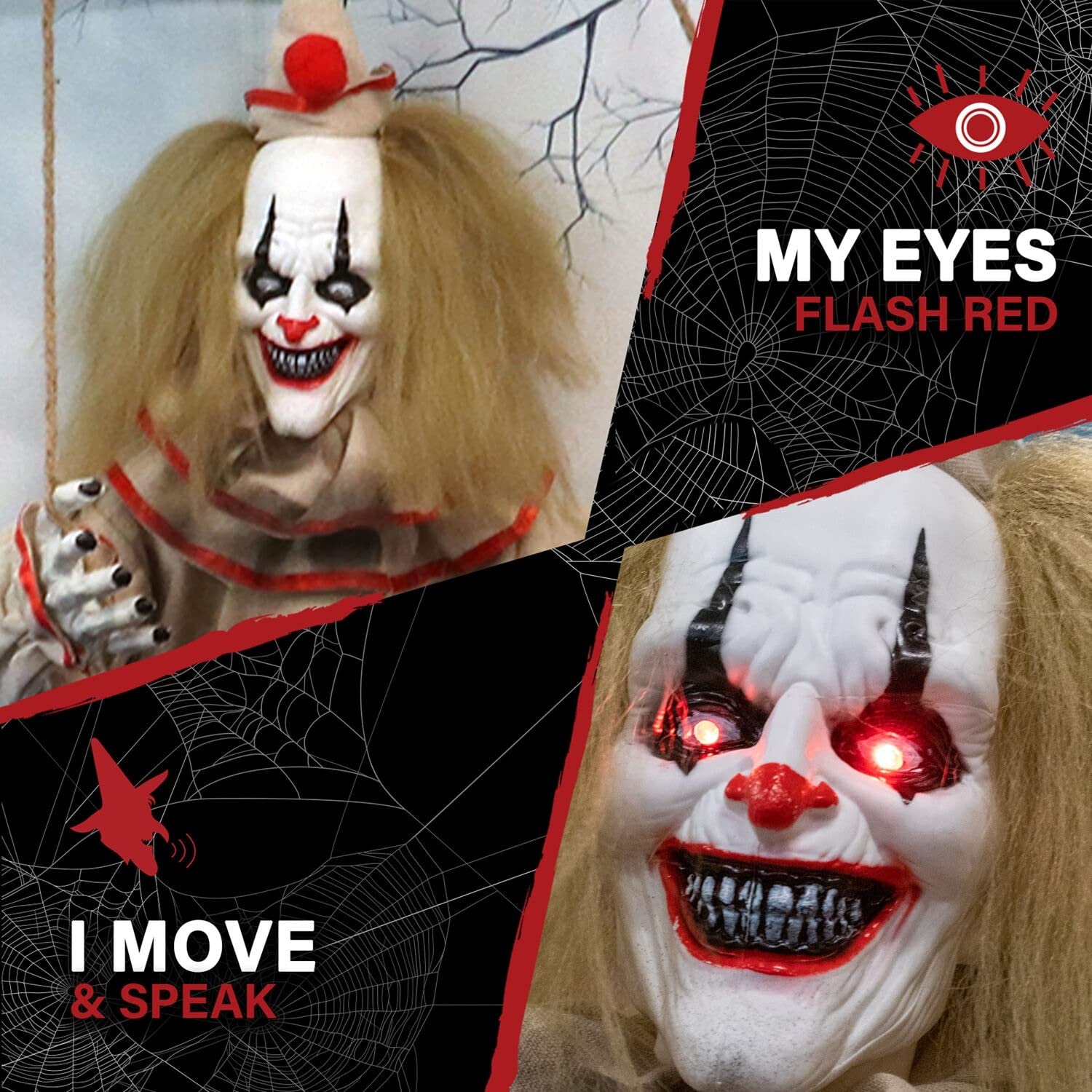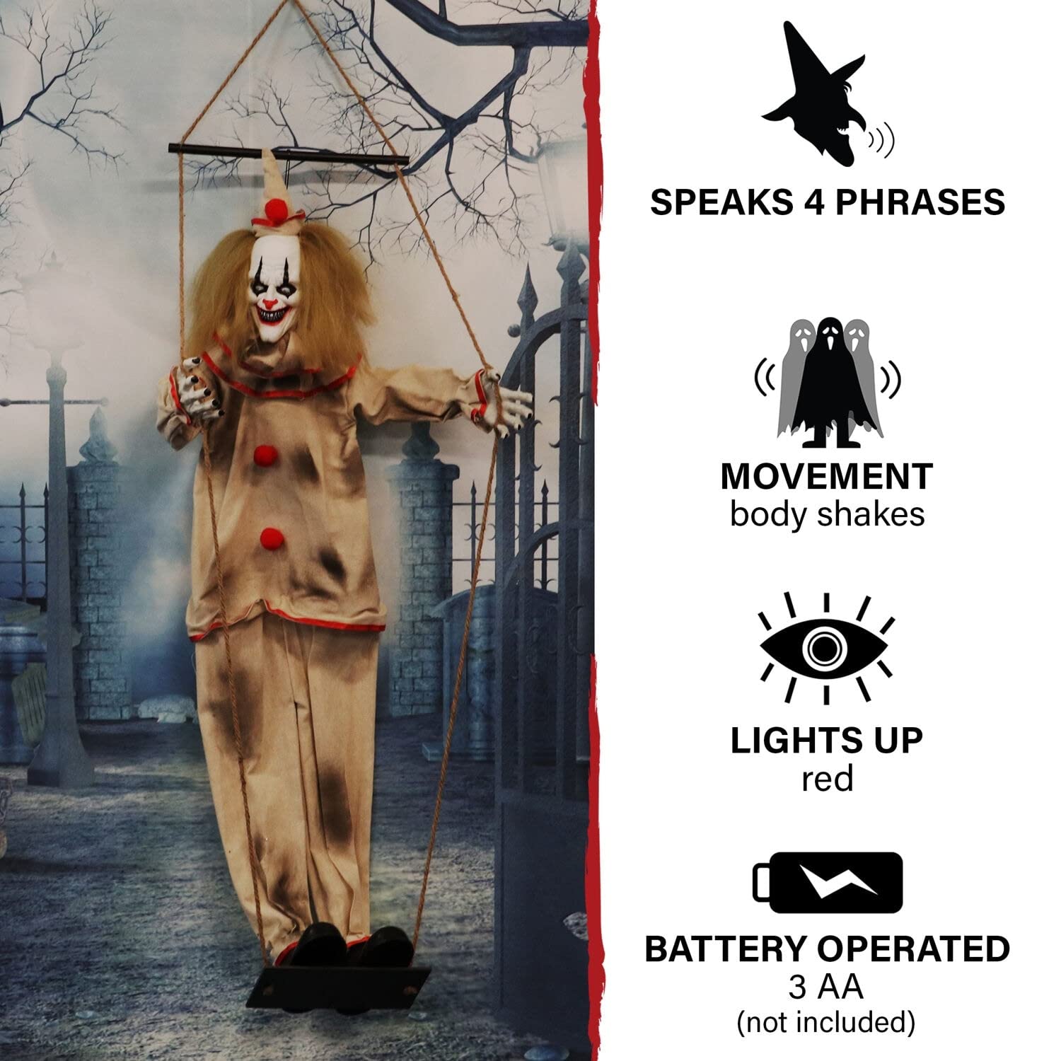Haunted Hill Farm 55-in. Smalls The Animated Swinging Clown Indoor Or Covered