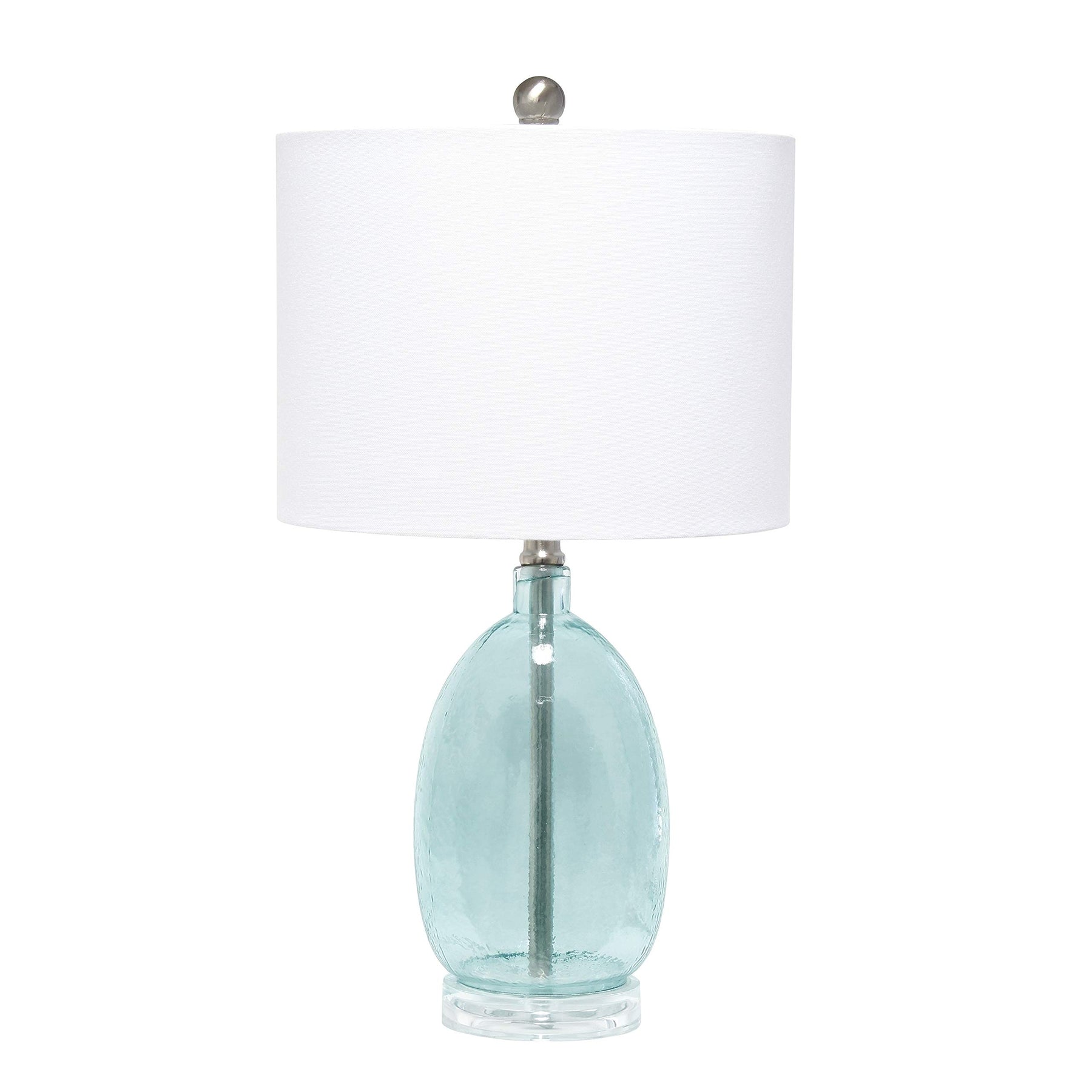 Home Oval Glass Table Lamp with White Drum Shade Clear