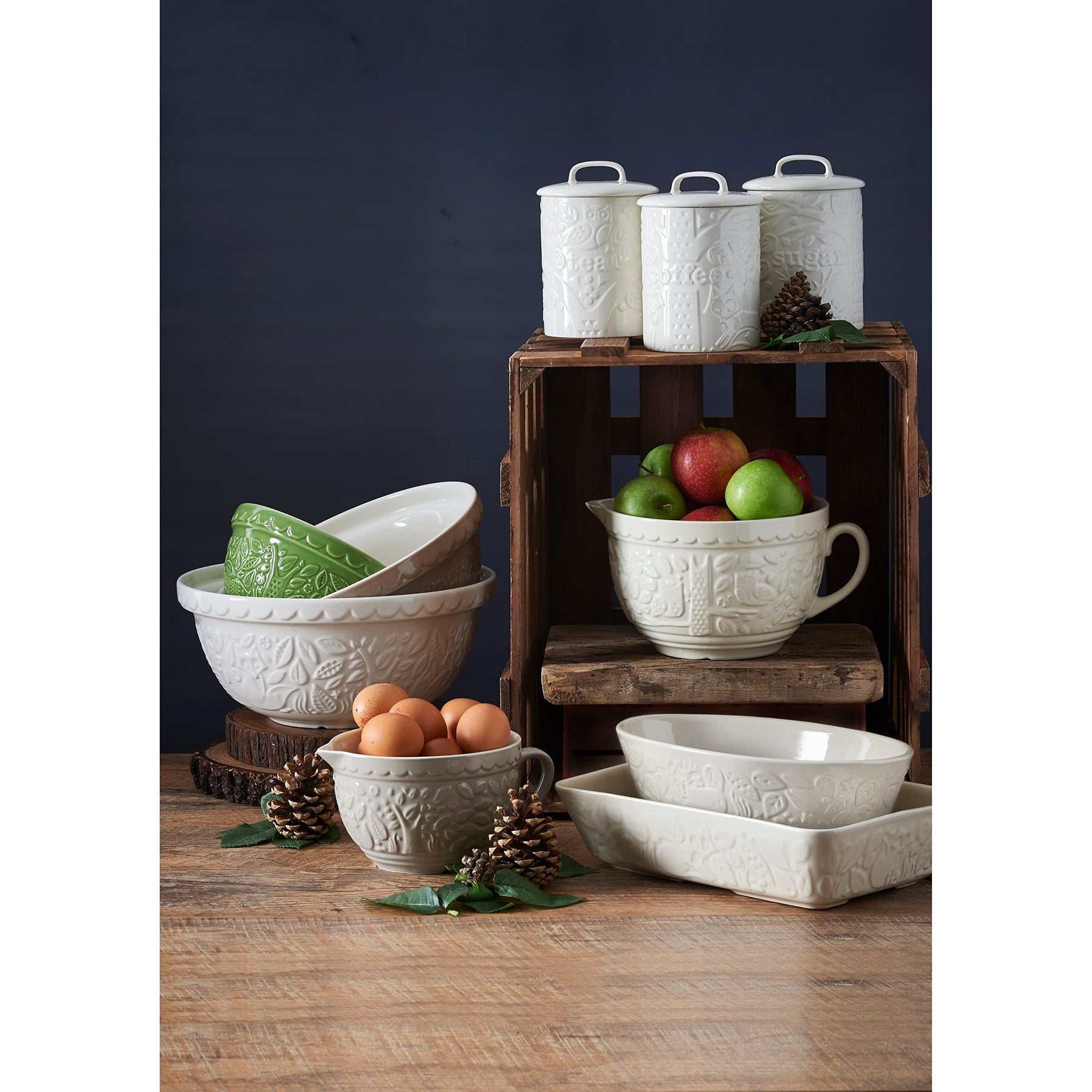 In The Forest Bowl 9.75" Off/White Stoneware 1 Piece