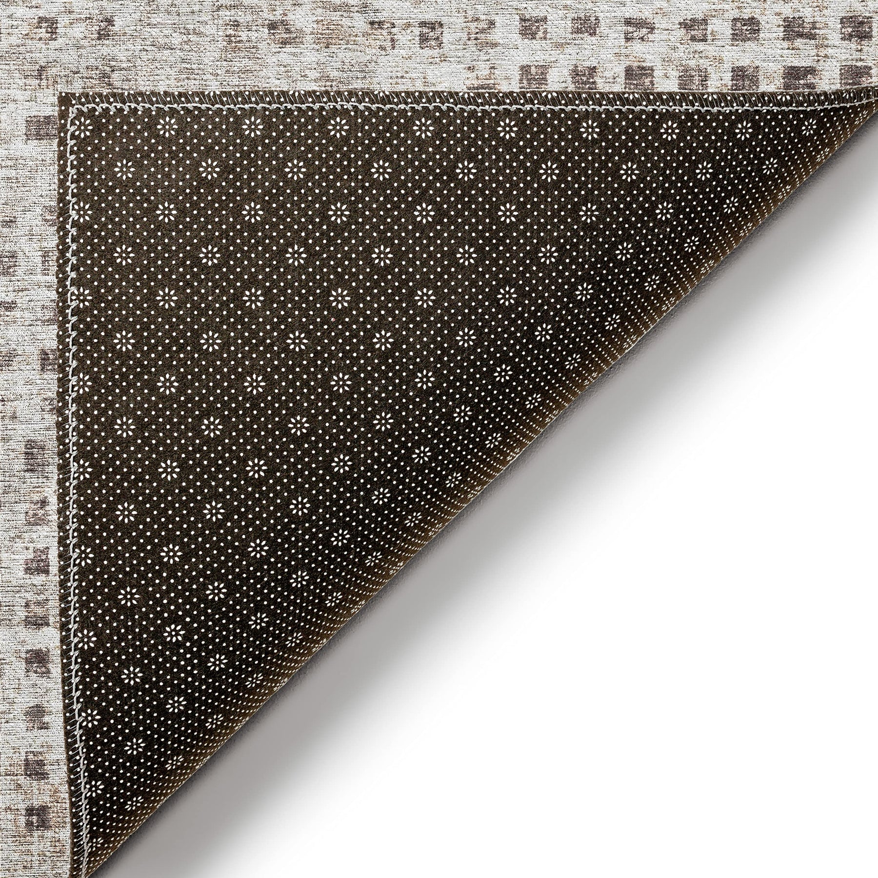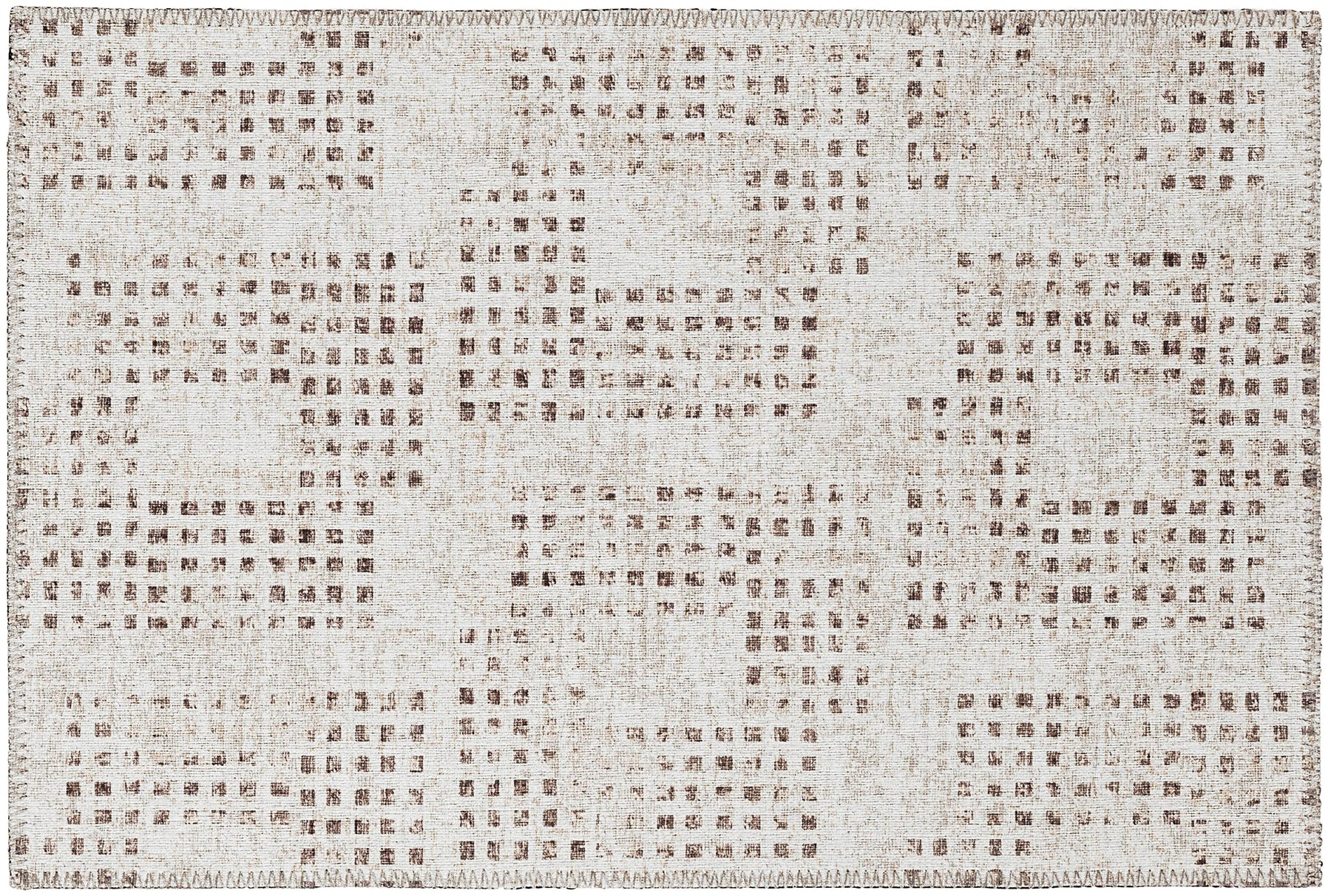 Made in the USA of 100% Polyester flat woven chenille | Durable low profile chenille and features a zig zag stitch surge on all sides | 0.19-In Pile height | Easy to clean, vacuum without a beater bar, recommend suction only or shake out, machine washable in cold water and air dry, some sizes may be too large for a residential washing machine and is family and pet friendly | This rug is a contemporary modern style, featuring a distressed houndstooth pattern