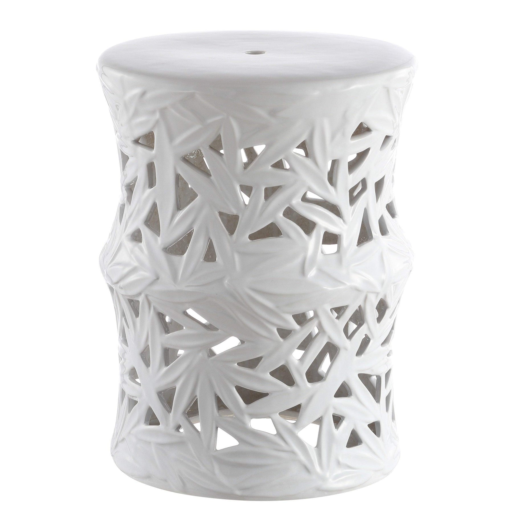 Indoor/Outdoor Garden Stool White Patterned Ceramic Painted