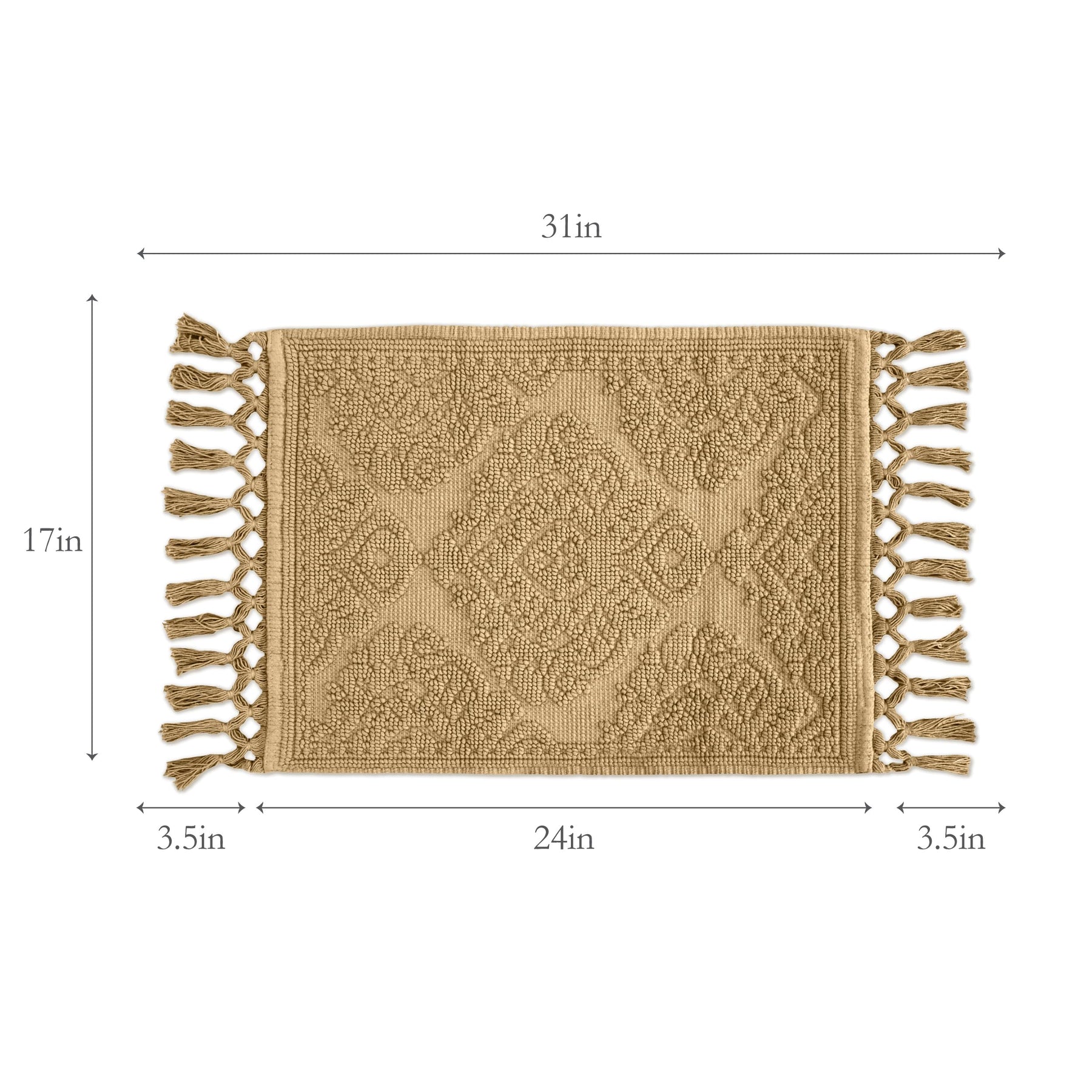 As stylish as they are durable, Jean Pierre Ricardo Collection features 100% natural cotton specially woven to resemble a beaded rug. Each bath rug is finished with on-trend fringe in classic, rich colors, perfect for elevating any bathroom dΓ©cor. Thick, absorbent 100% cotton is meant for long-lasting use. Machine washable cotton makes cleaning a breeze. Machine wash cold separately with mild detergent. Do not bleach. For best results, hang dry. Rug grippers or non-skid rug pad recommended and sold separately. Imported.