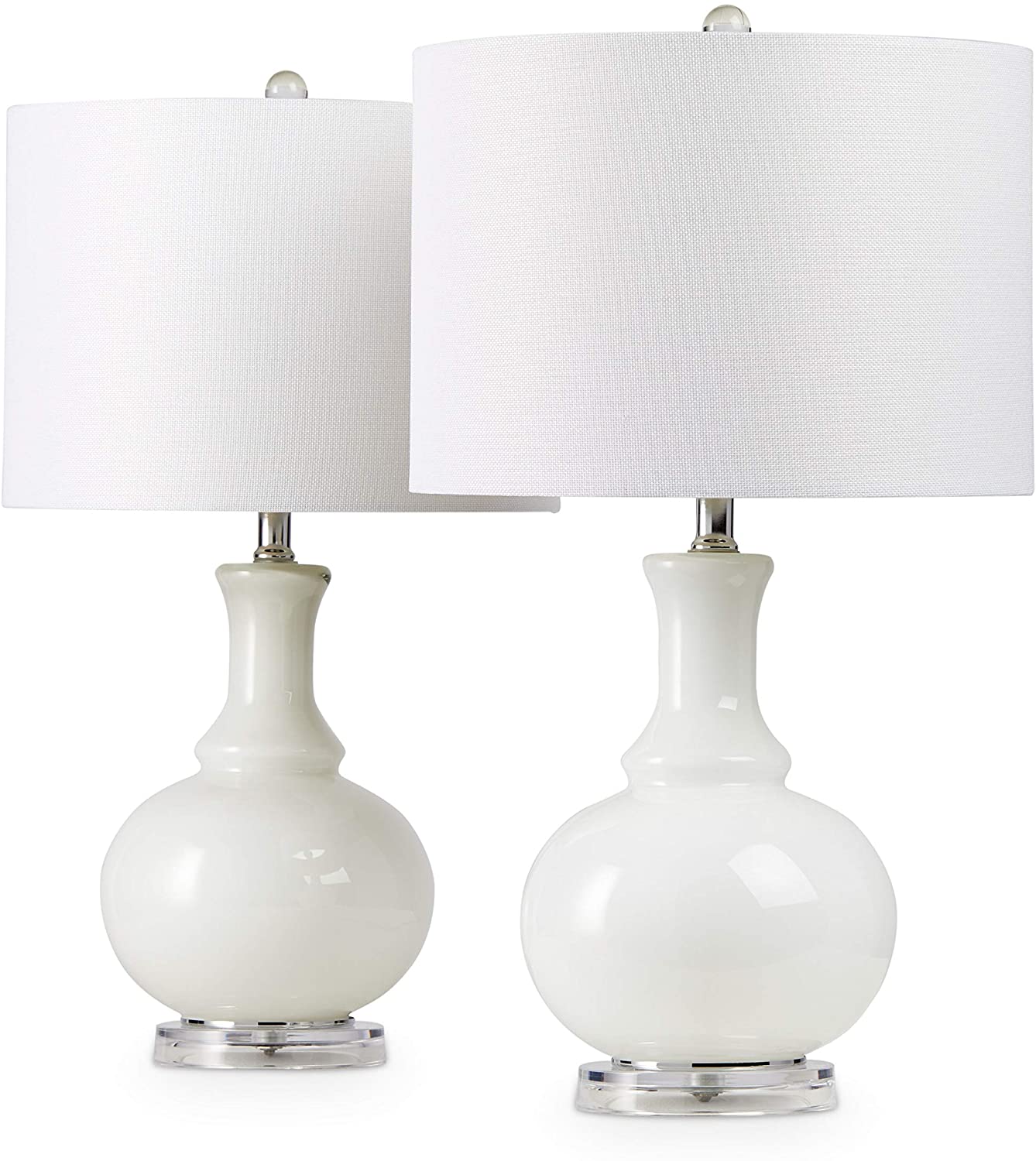 2 Piece Cream Glass Table Lamp Set Crystal White Reading