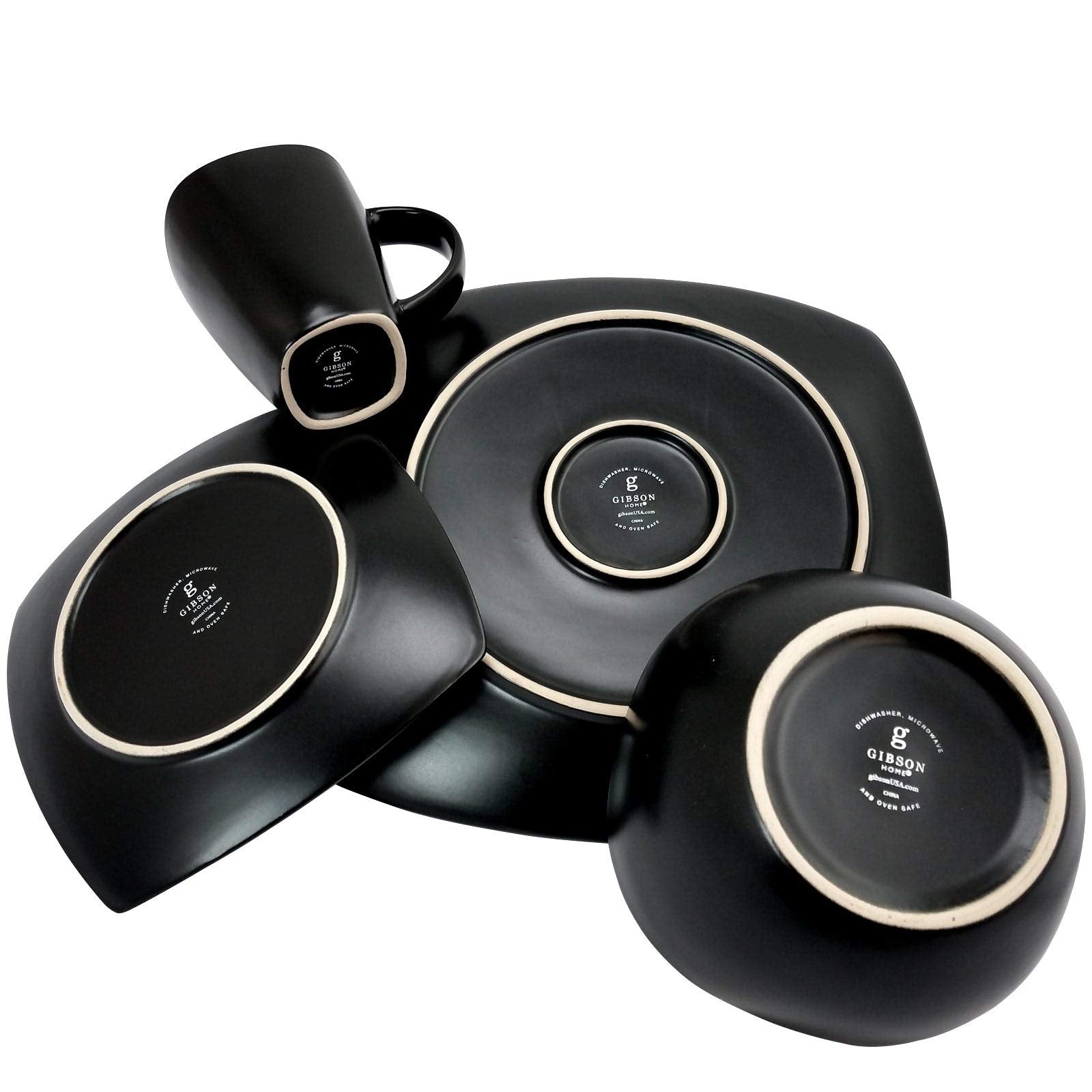 Modern 16 Piece Squared Dinnerware Set in Blue Solid Casual