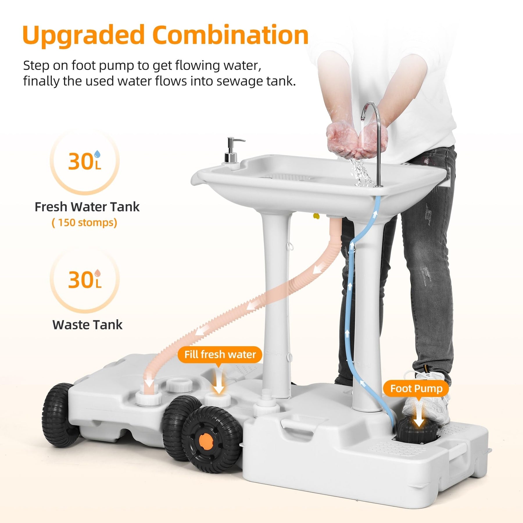 Portable Sink Camping 30l with Rolling heels Hand ashing Station