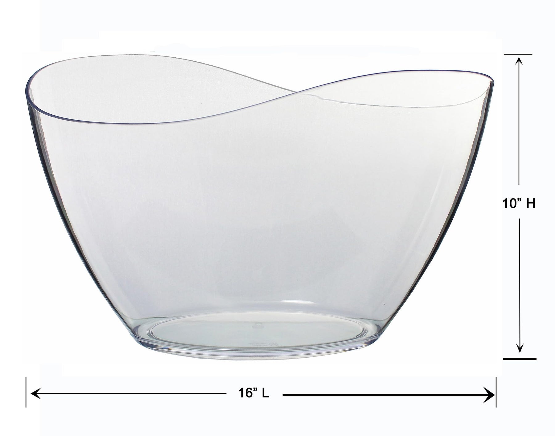 Stylish clear oval shape party tub with "wave” rim design is an impressive entertaining must. Will hold up to 4 wine bottles and plenty of ice. Durable break resistant styrene polymer is easy to carry. Color photo label on outside. Measures 16” x 8 ½” x 10” H. BPA Free.