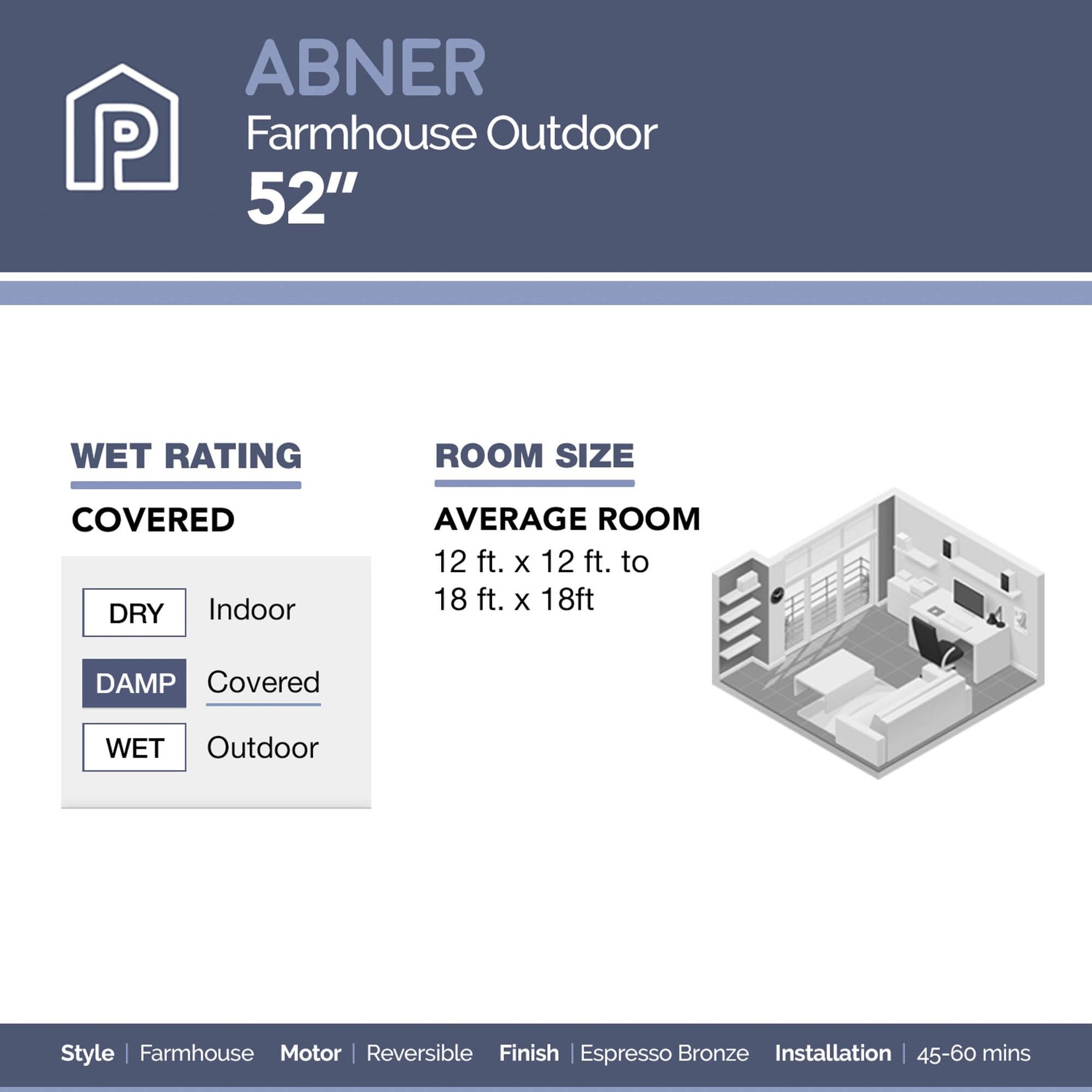 Item Name:Prominence Home Abner 52 Inch Modern Farmhouse Indoor Outdoor LED Ceiling Fan with Light Pull Chain Three Mounting Options Dual Finish Blades Reversible Motor - 80091-01 (Bronze)
