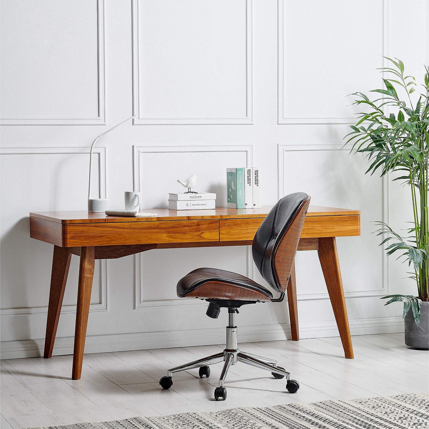 Pu Leather Bamboo Office Chair Black Mid-Century Modern Chrome Adjustable