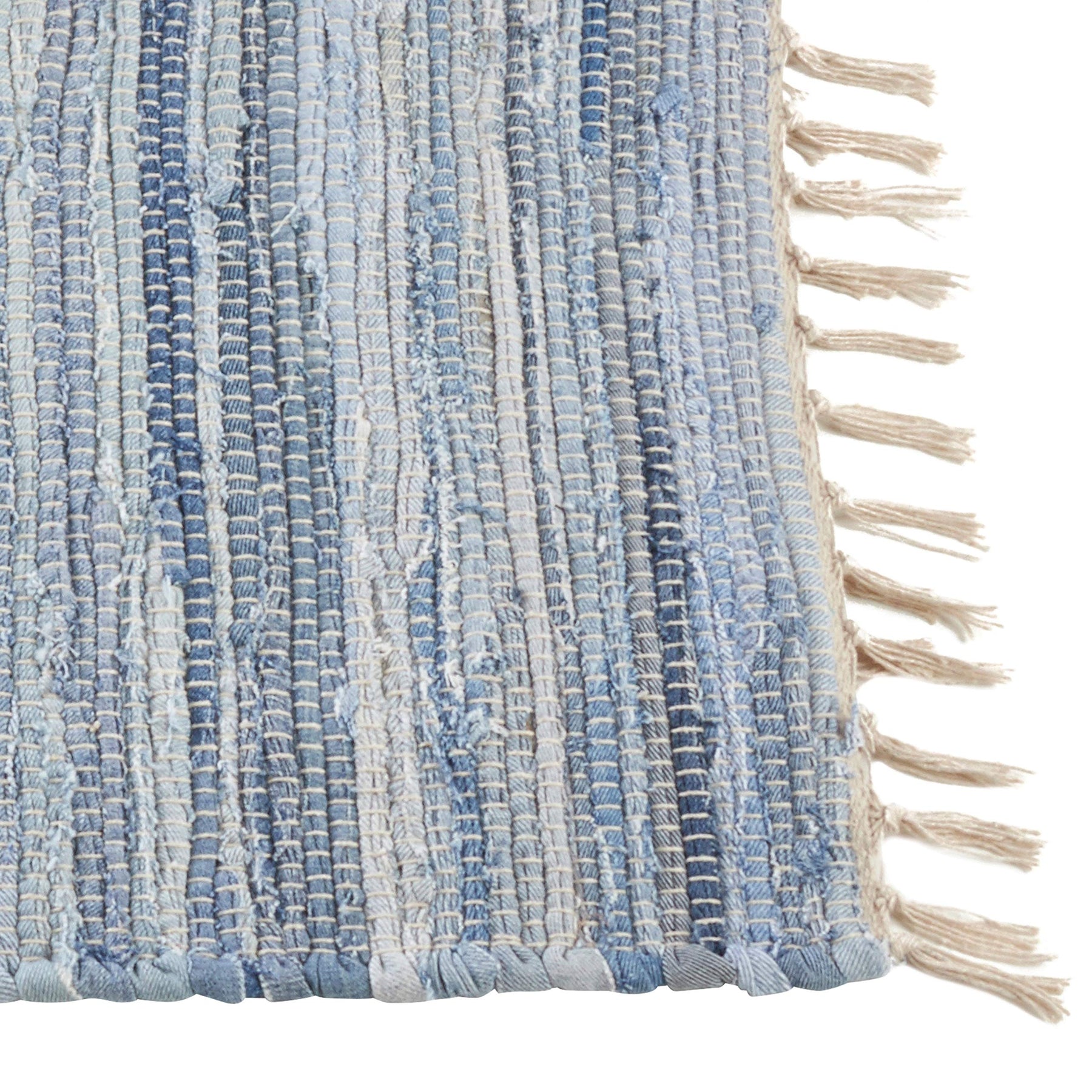 Rag Placemat with Tassels Set of 4 Denim Blue Striped
