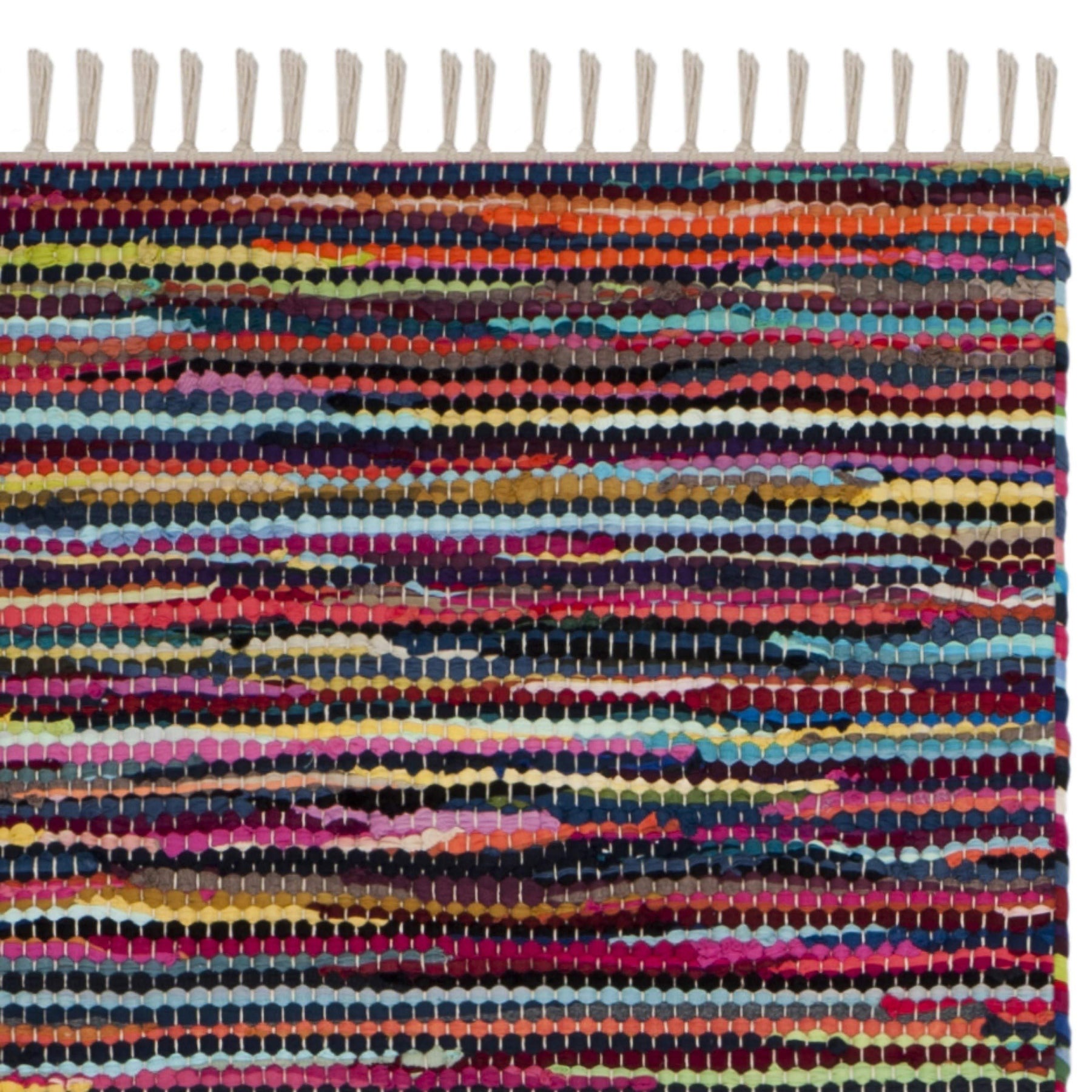 Rag Rug Runner with Tassels Maroon Pink Multicolor Rags Weave