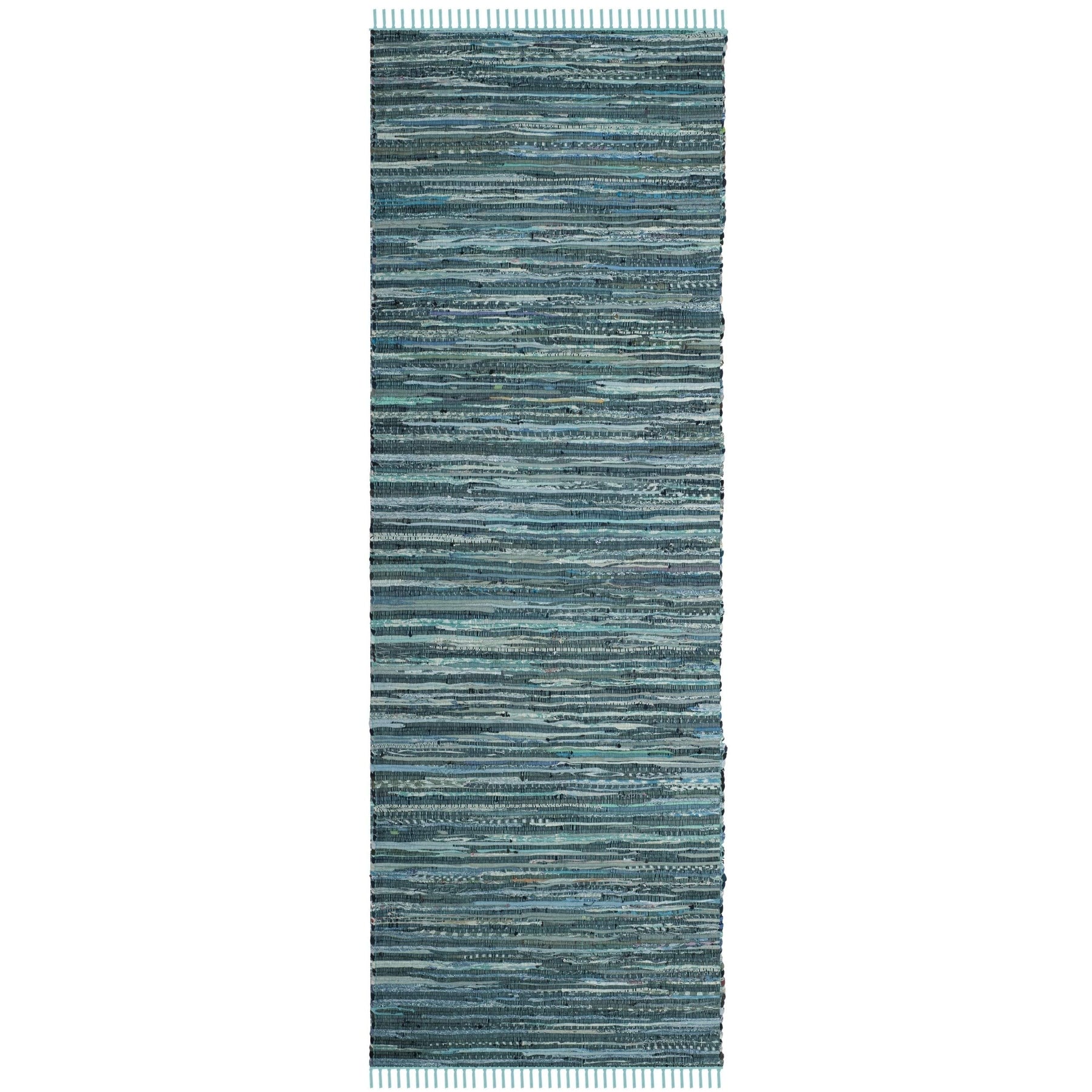 Rag Rug Runner with Tassels Teal Turquoise Rags Weave Floor