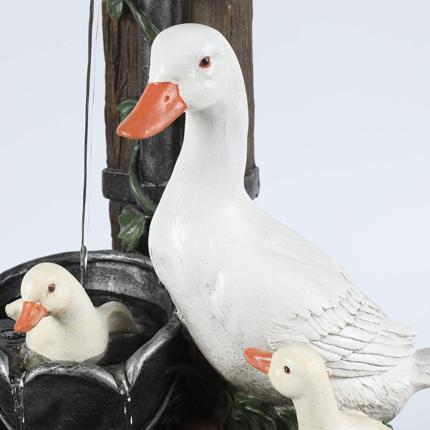 Resin Duck Family Outdoor Patio Fountain Multi Color Farmhouse Polyresin