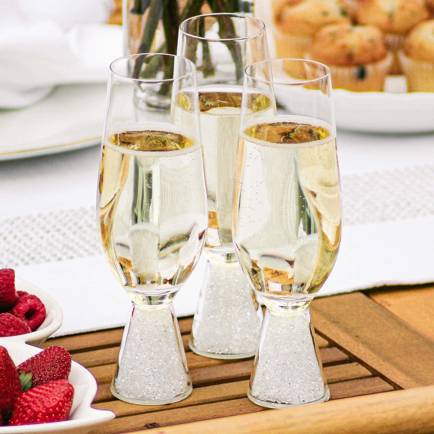 Rhinestone Stemless Crystal-filled Champagne Flute Set Of 6 Silver Crystal
