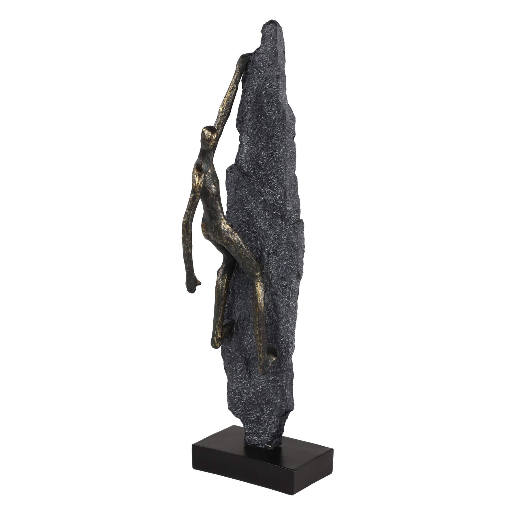 Rock Climber Figurine Scaling A Stone Wall Statue 6 X 5 19 Brown Industrial Resin | Modern decor statue made from 100% resin. Human figurine rock climber ascending a stone wall; figure is painted dark gray with a metallic gold finish; the rigid rock wall is a distressed stone-like gray hue and texture. Design/Look : Industrial. Material : Resin. Accent type : Figurine. Assembly : Assembled. Season or holiday : All Seasons | This resin shelf decor statue measures 5.5L x 5W x 18.5H and weighs 3 lbs.