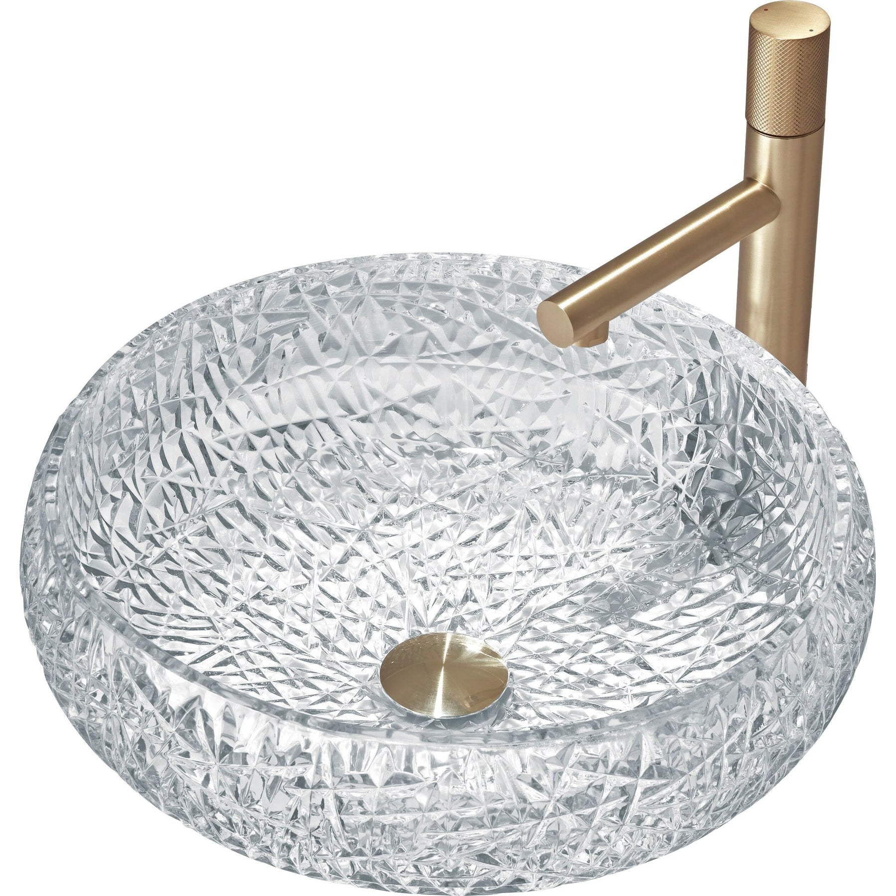 Round Basin Glass Crystal Bathroom Vessel Sink 18" Clear Finish Rust Resistant - Diamond Home USA
