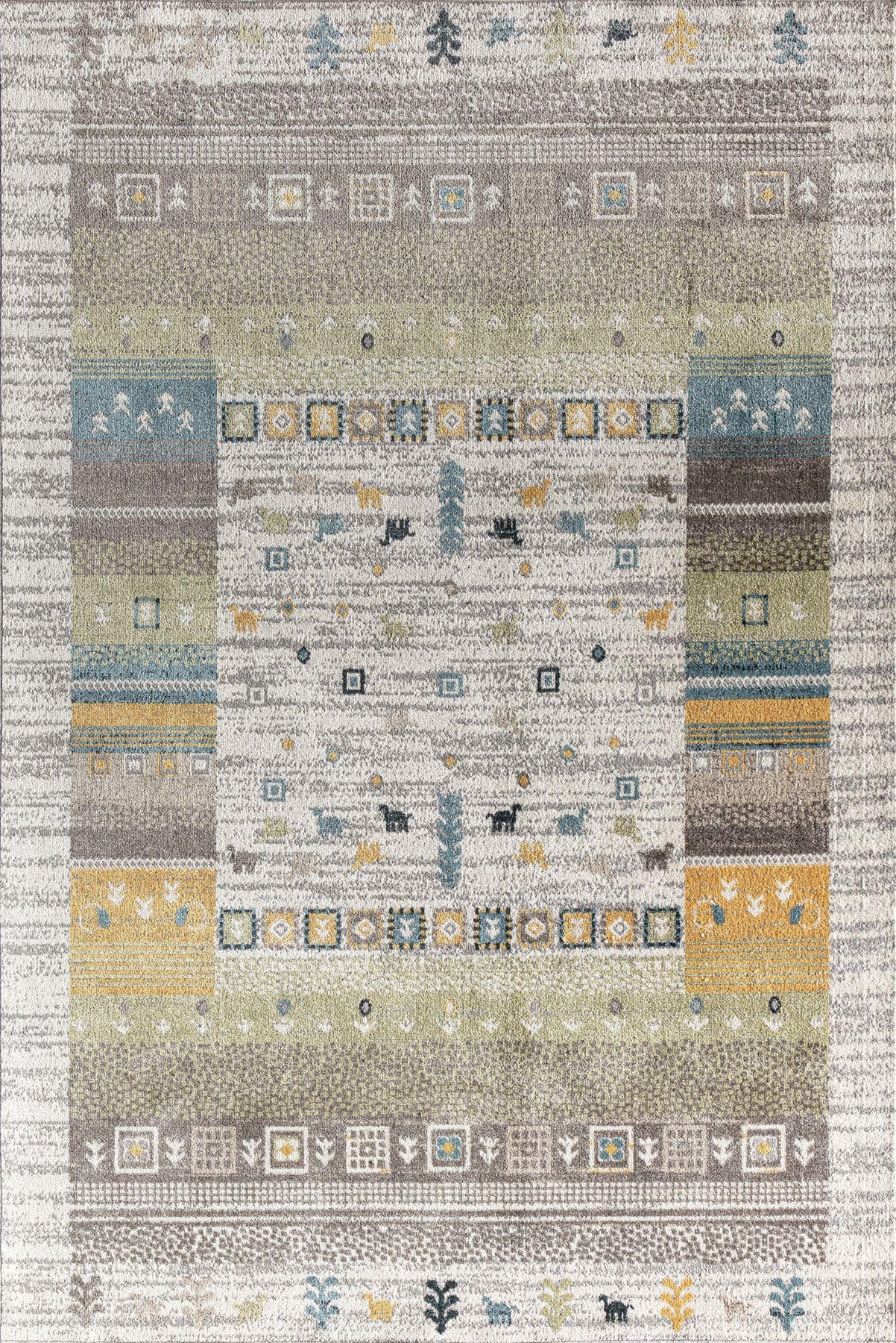 Statement area rugs are a fun way of expressing personal style and flair, serving to complement the existing room furnishings and décor. These stunning rugs may seem like just a simple decorative touch, but the proper rug choice can set the tone of any space entirely. The bold yet versatile Jada Collection features an eclectic mix of rustic, Southwestern-inspired patterns, contemporary abstract designs, and vibrant colors, straddling the line between daring and sophisticated. | Setting the space in vibrant pattern and exciting color, the Jada Collection displays an array or blues, red, grays, greens, and yellows, accentuated by playful motifs and eye-catching linework. While each rug is uniquely its own, this collection is astoundingly versatile and bodes tastefully with a wide array of home styles. Whether you’re looking to tie the modern rustic house together or to dress up a minimalistic, contemporary space, you’ll find you next favorite rug in this collection. | While the Jada Collection serves as beautiful and bold eye candy for your home, these rugs are equally as functional. Thoughtfully designed and expertly crafted, these rugs will offer many years of floor protection, noise reduction, and overall warmth and luxury to your home. The incredibly plush texture feels so soft underfoot, while the fade and stain-resistant material makes for an easy clean up, specially designed with hectic households in mind. | Our area rugs are carefully made to suite all types of personal styles. We want to help you create the home of your dreams, so we’ve developed an extensive range of chic designs in smart colors, and we know you’ll find your perfect rug. | Construction Type:Machine Made. Product Note:Rugs may contain temporary creases upon arrival, allow time for creases to flatten and settle | Created with the upmost care and finesse, we confidently stand by our products. All our rugs are made with your busy and hectic life in mind. Stain resistant and durable, our rugs will gracefully age with you and your home. | Cushion your floors with this rug and your steps will feel lighter than ever. Not only will you be incorporating charm and style to your space, but you will also be adding a thick layer of comfort between your feet and floor.