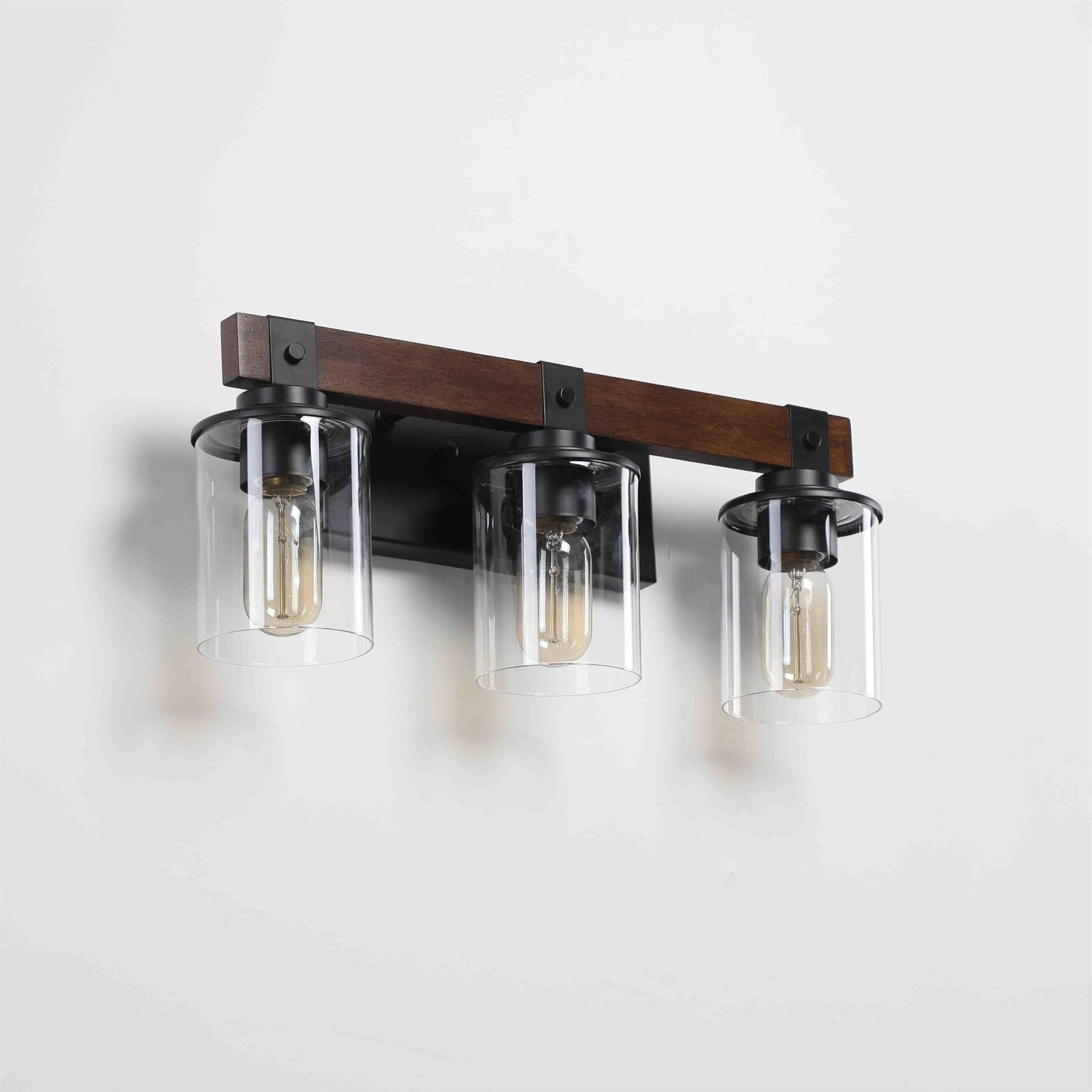 Rustic 3 Lights Vanity Fixture Bathroom Sconce Black Iron | Design/Look : Rustic. Material : Iron. Finish : Black. Shade material : Glass. Assembly : Assembly Required. Color : Black. Product Size: 18.5 In. W X 5.9 In. H X 8.3 In | Length : 13 to 24 Inches.