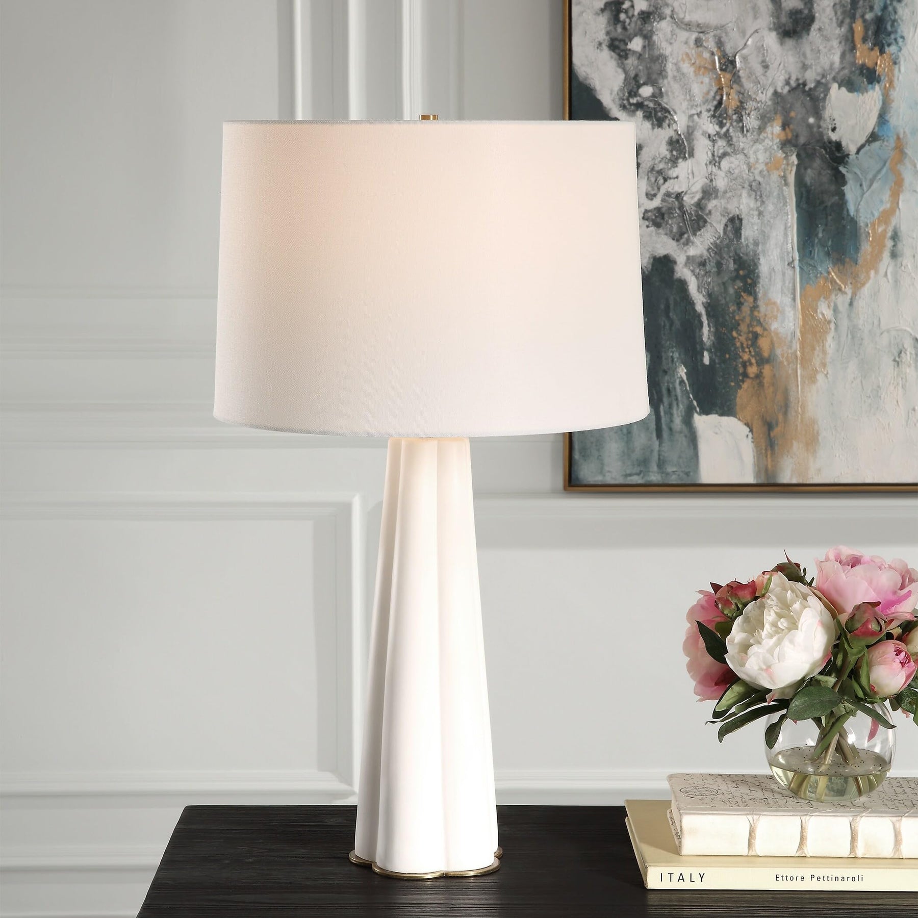 Satin White Ceramic Table Lamp 15" w X 26" h