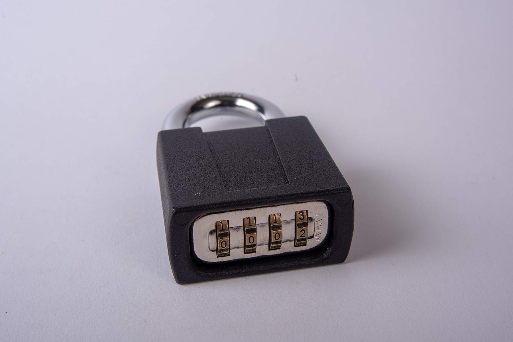 Set-your-own 4-digit combination for convenience and security, 10,000 potential personalized options | Solid brass internal mechanisms; 2" (51mm) wide diecast body for durable security and weatherability | Best for job boxes, gang boxes, utility meters, substations, tool chests, tool boxes and lockers | 1" (25mm) hardened steel - chrome plated shackle; Black epoxy finish | Tough heel and toe lever locking system; Automatic "0000” stop