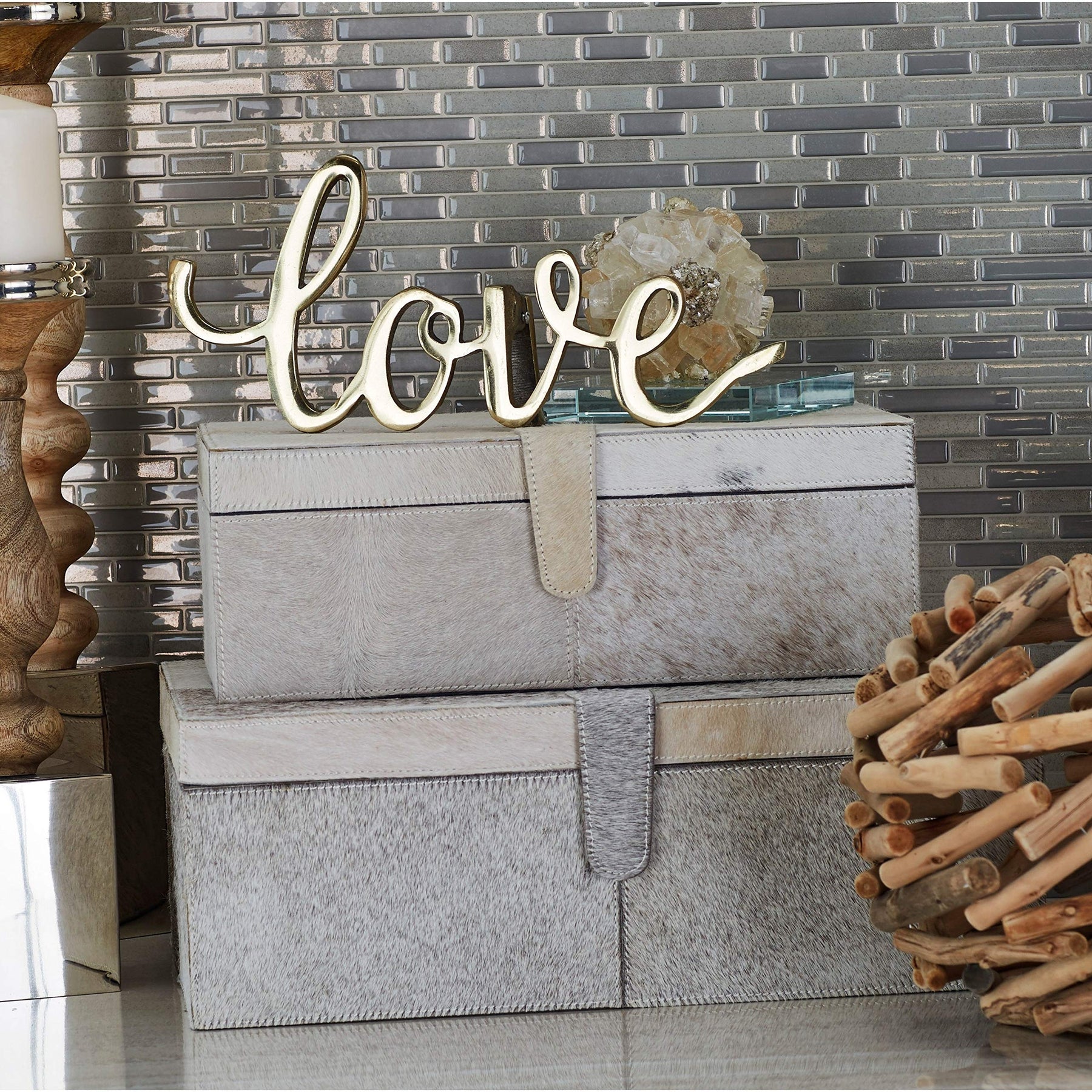 Set Of 2 Natural 17 And 14 Inch Leather Boxes