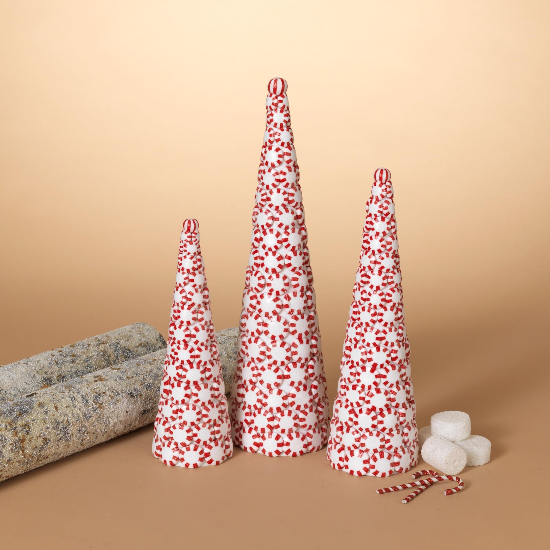 Set of 3 Clay Whimsical Traditional Peppermint Candy Trees Multi