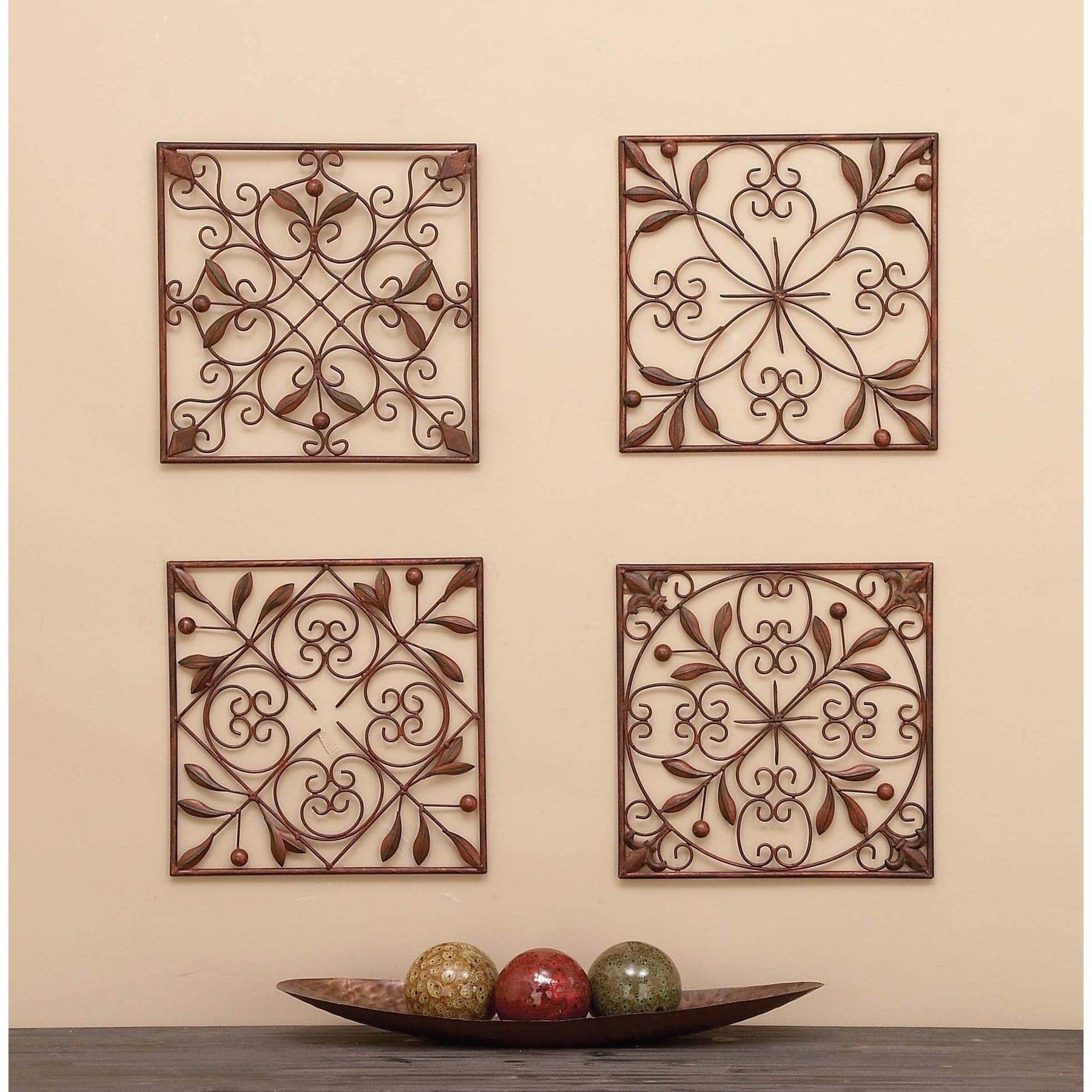 Set of 4 Traditional Floral Scrollwork Metal Wall Decor by