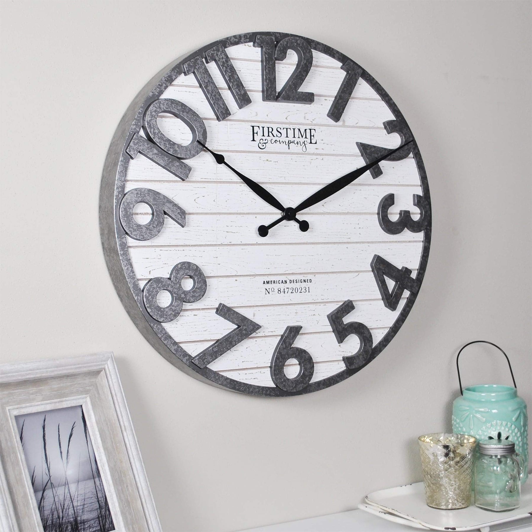 Shiplap Wall Clock American Crafted Distress White Gray Plastic Wood