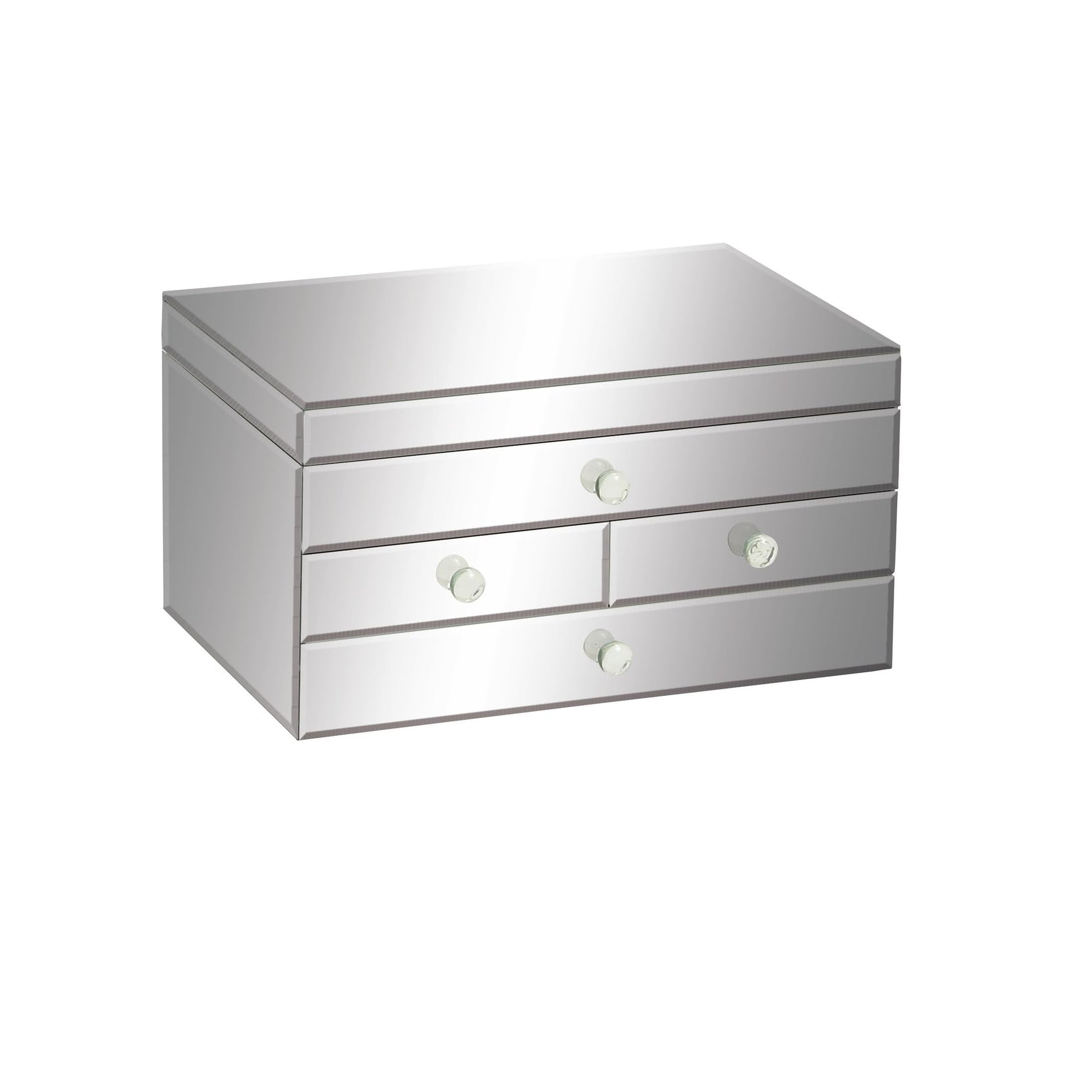Silver Glass Mirrored 4 Drawers Jewelry Box Modern Contemporary