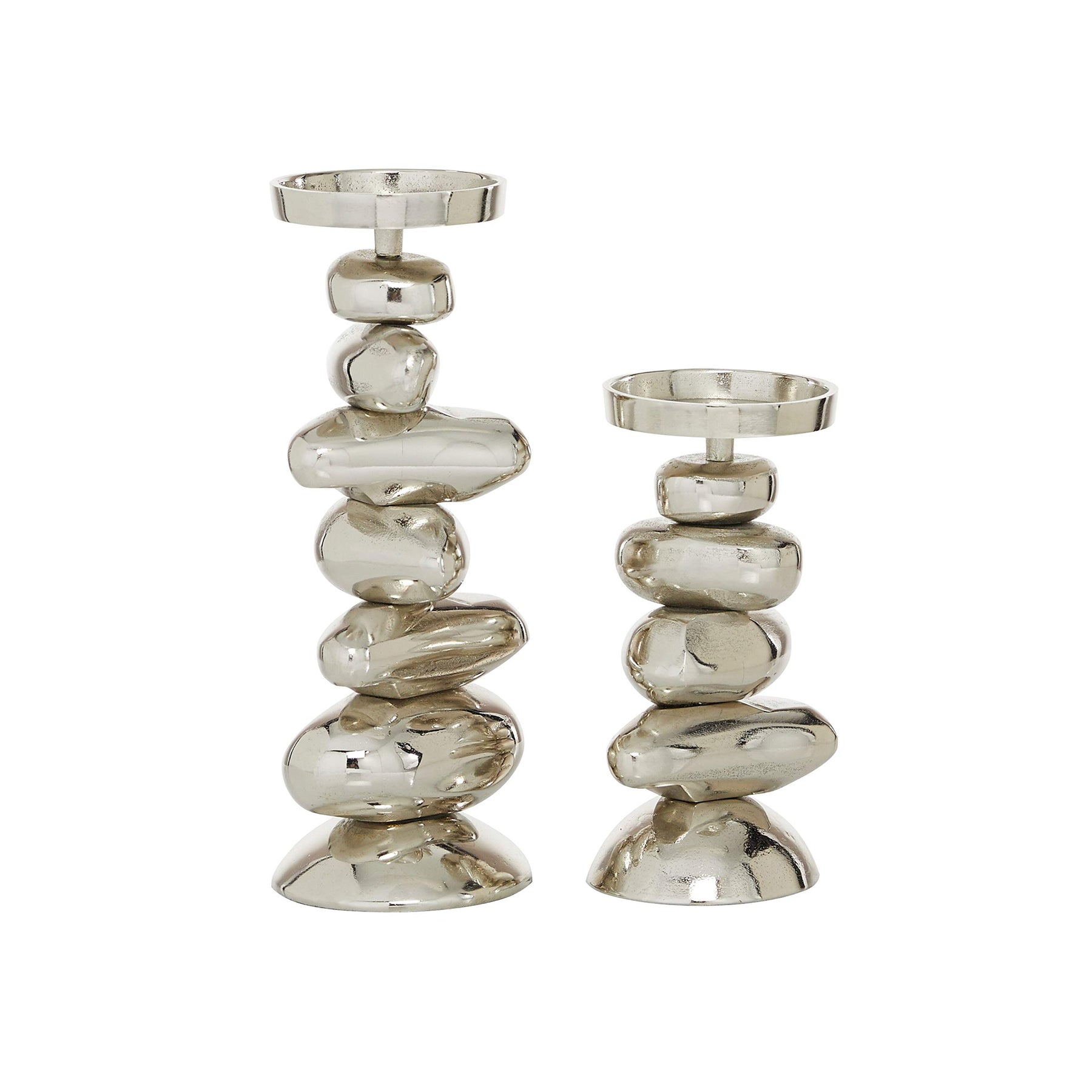 Silver Stacked Stone Candle Holders Set Of 2 10" 14" 5 X 14 | Material : Aluminum. Type : Candle Holders