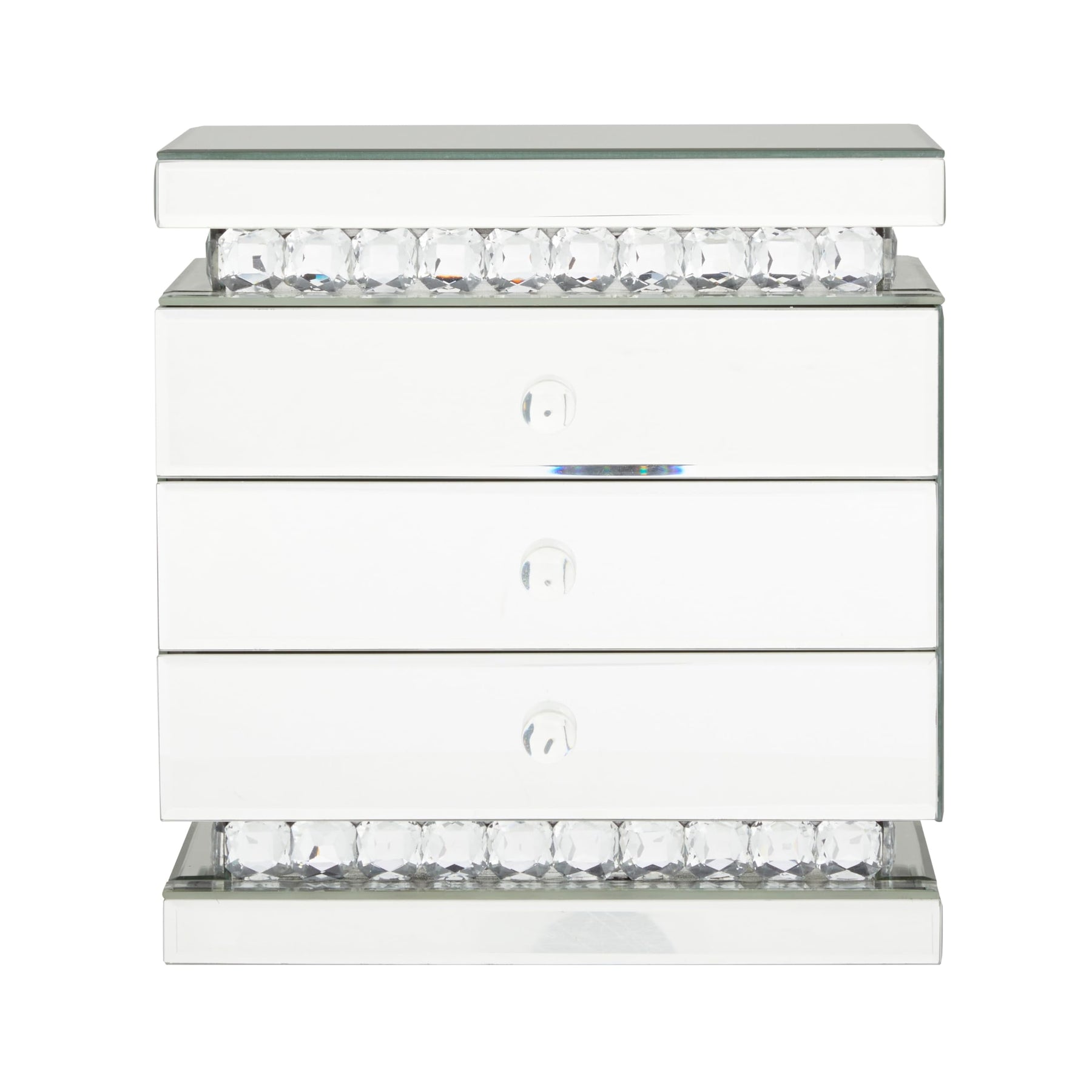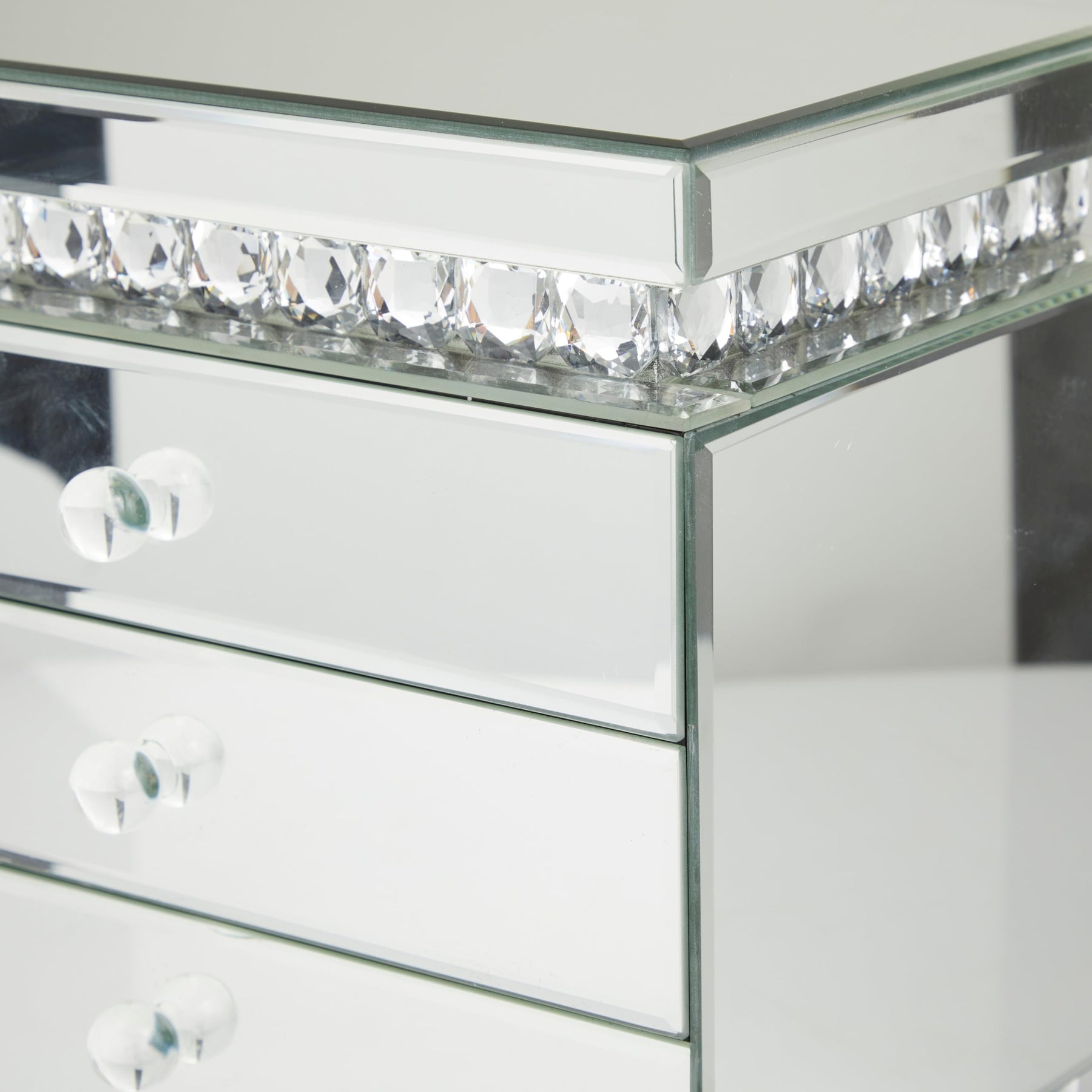 Silver Wooden Mirrored 3 Drawers Jewelry Box With Crystal Embellishments