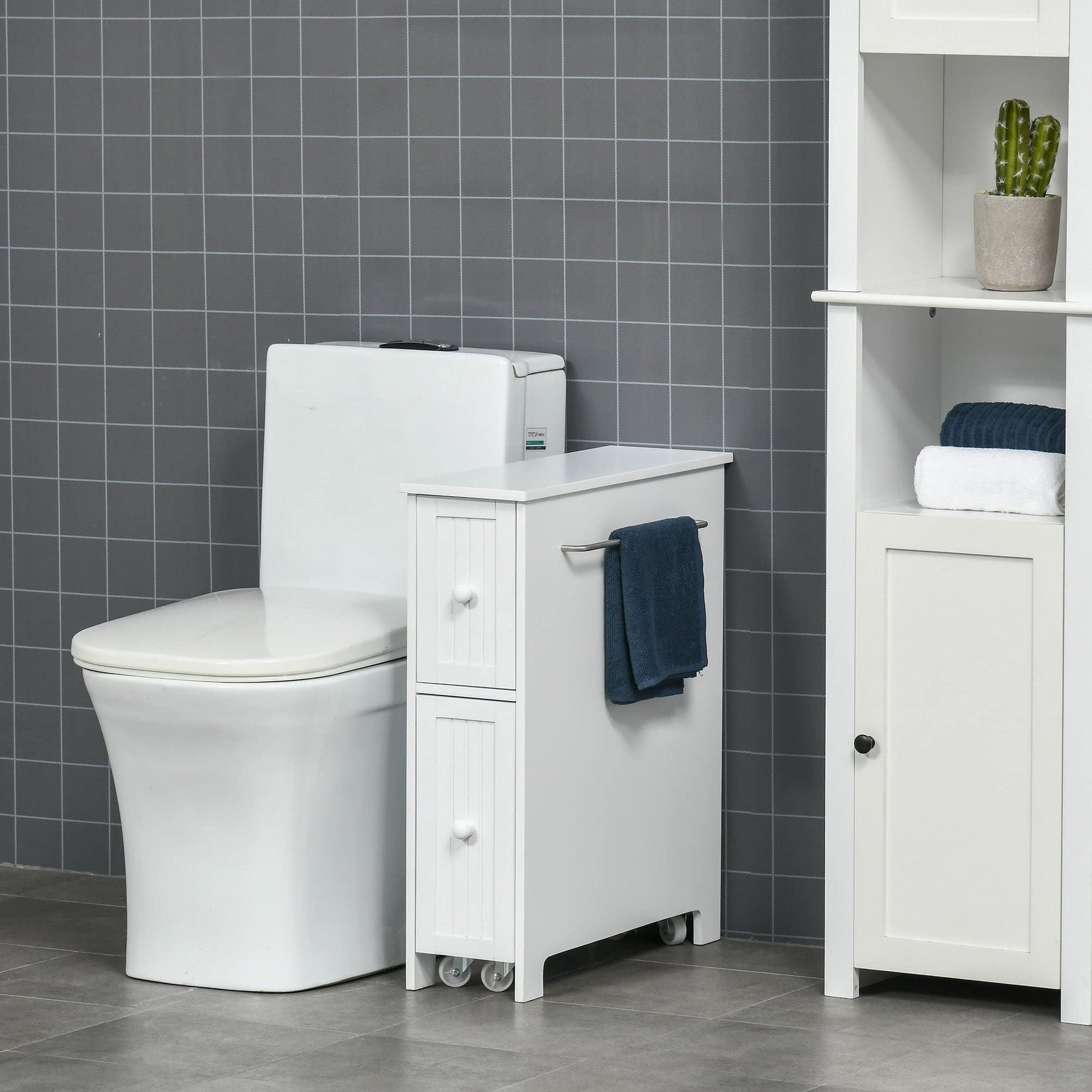 Slim Bathroom Cabinet Freestanding Storage Toilet Paper Holder and Wheels