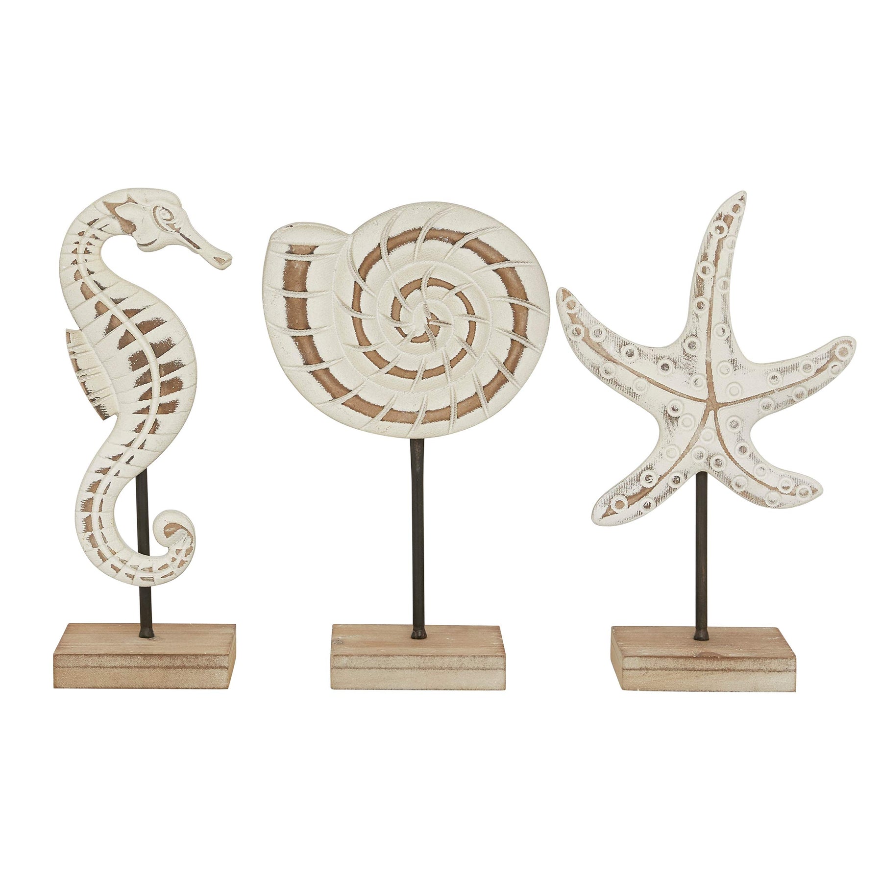 Small Wooden Sea Sculptures Set of 3 8 X 4