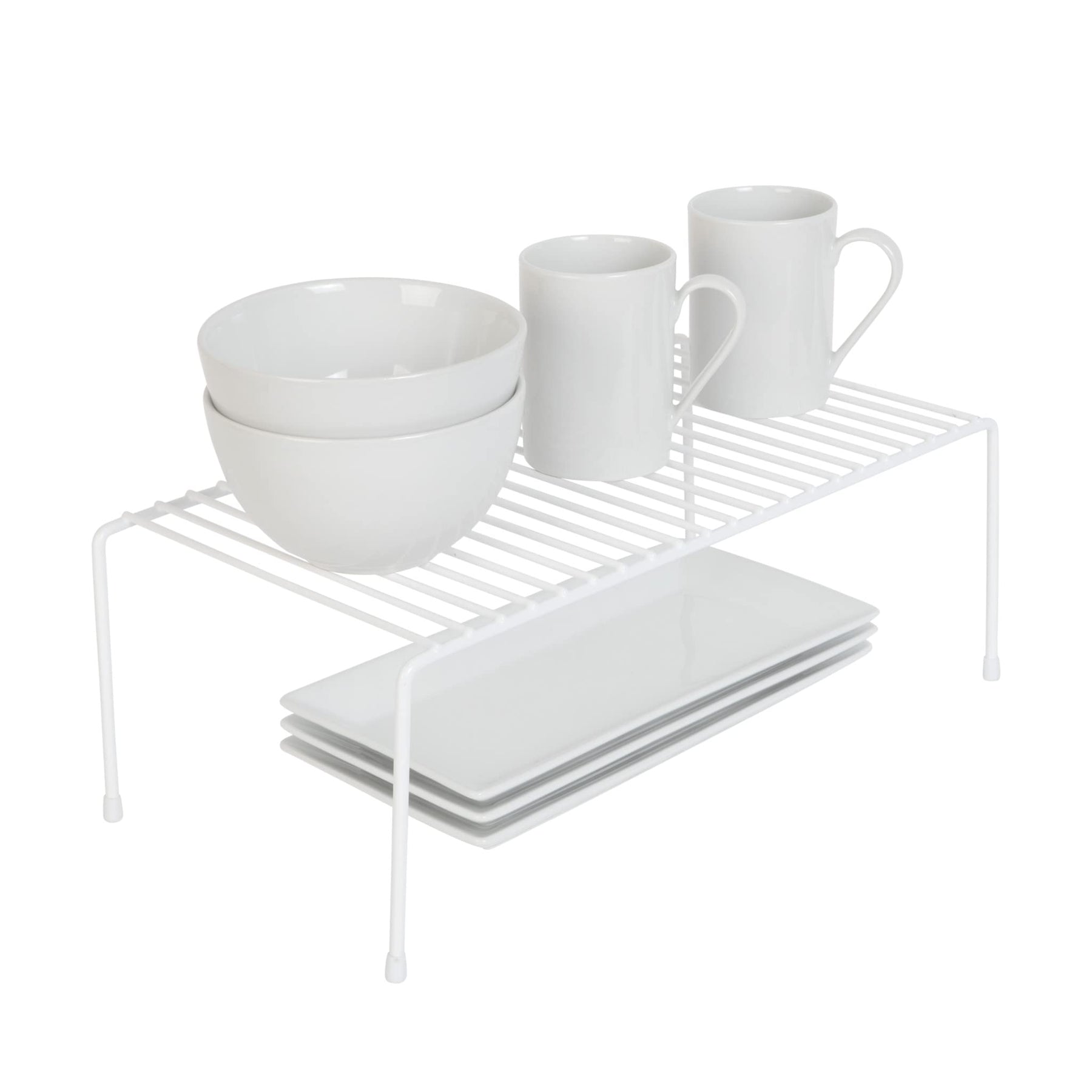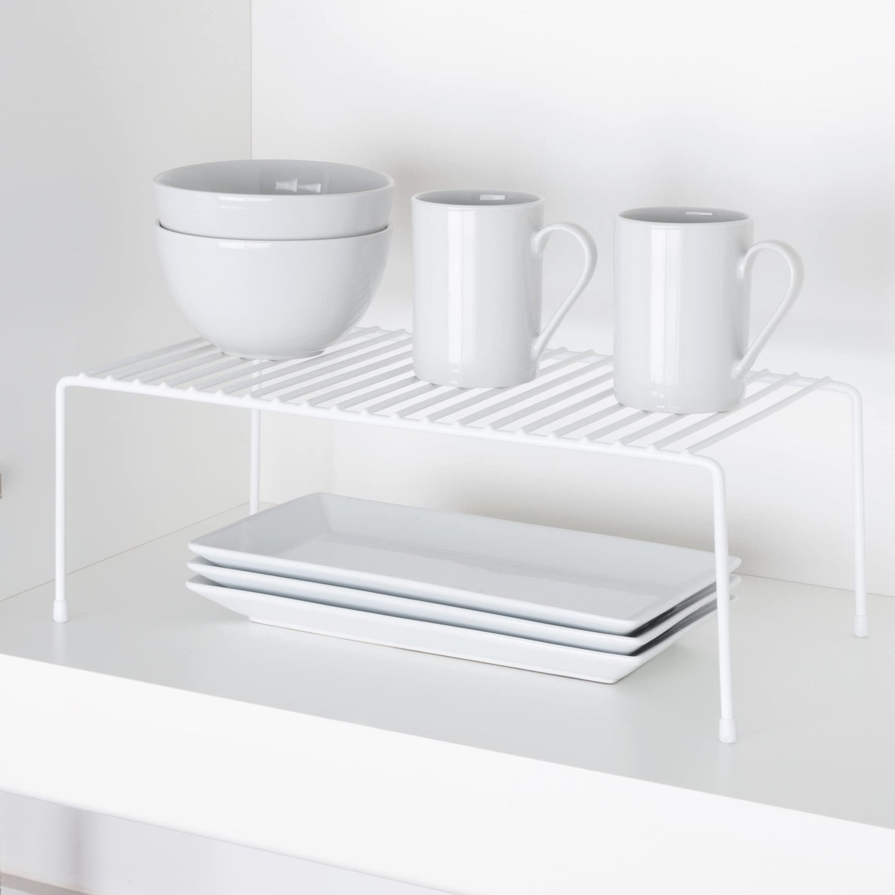 Description:Smart Design Kitchen Storage Helper Shelf [White]The perfect item to help maximize cabinet space and organize your kitchen.The shelf is large sized and can store plates, cups, kitchen linens, and other kitchen items.Package IncludesKitchen Storage Helper Shelf w/ plastic feet that protect cabinets, countertops, and other surfaces against scratches and nicks.Ideal home storage solution for kitchen cabinets, pantries, craft closets, bathroom cabinets.Features and BenefitsIncludes rust resistant PE finish that keeps the shelf sturdy and protected from rust and other corrosives.Makes use of the wasted space in cabinets by creating two levels of storage: on the shelf and underneath the shelf.Product SpecificationsDimensions: 16(L) x 8.5(W) x 5.75(H) inchesColor: WhiteMaterial: Steel w/ Rust Resistant Plastic CoatWeight: 1.5 PoundsBrand and Warranty InfoPeople around the world live smarter with Smart Design, manufacturers of innovative, high-quality home and commercial organizational and laundry care products.Since 1970, Smart Design has set the standard of excellence in the Home Organization Industry by developing products that allow consumers to optimize their needs.Everything from your closet, kitchen, laundry room, home office, garage and auto to your workplace.Located in Southern California, Smart Design is a family-owned company with customer service at the core of our business.If you have any questions, issues, or concerns about your order, reach out to our Customer Service Team via email anytime, 24/7.Our Team will do their best to respond to all emails within 24 hours.Visit us online for phone support Monday-Friday 8 am - 5 pm PST.