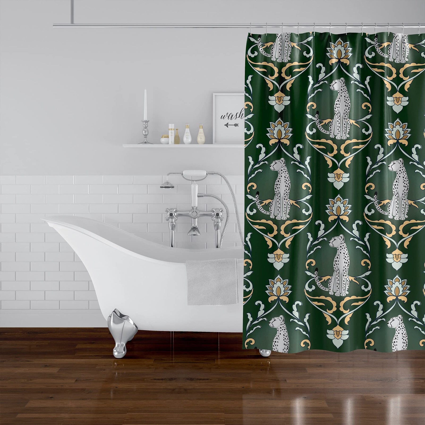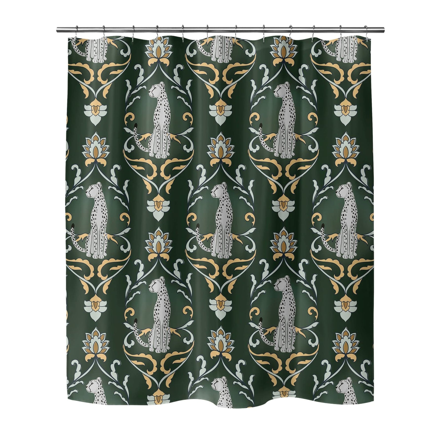 Snow Cats Green Shower Curtain Green Animal Print Modern Contemporary Polyester | Design/Look : Modern & Contemporary. Material : Polyester. Pattern : Animal Print. Care instruction : Machine Wash. Color : Green | Product Size: 0.1 In. L X 71.0 In. W X 74.0 In. H.