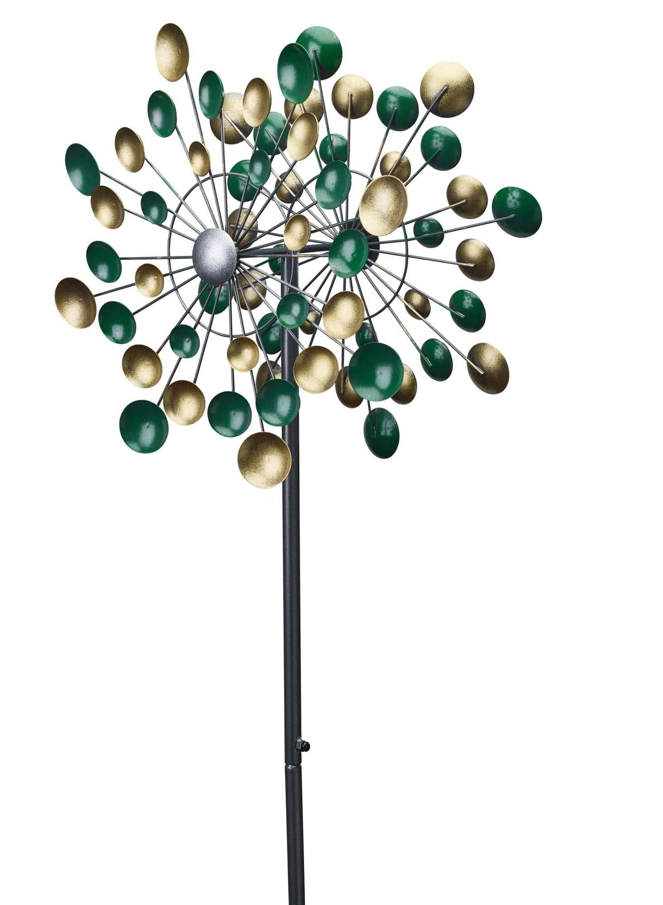 DUAL-ACTION WIND SPINNER adds joy to any outdoor space | Strong 3-PRONG GROUND STAKE keeps wind spinner upright | WEATHER-RESISTANT FINISH protects against the elements | Easy to assemble