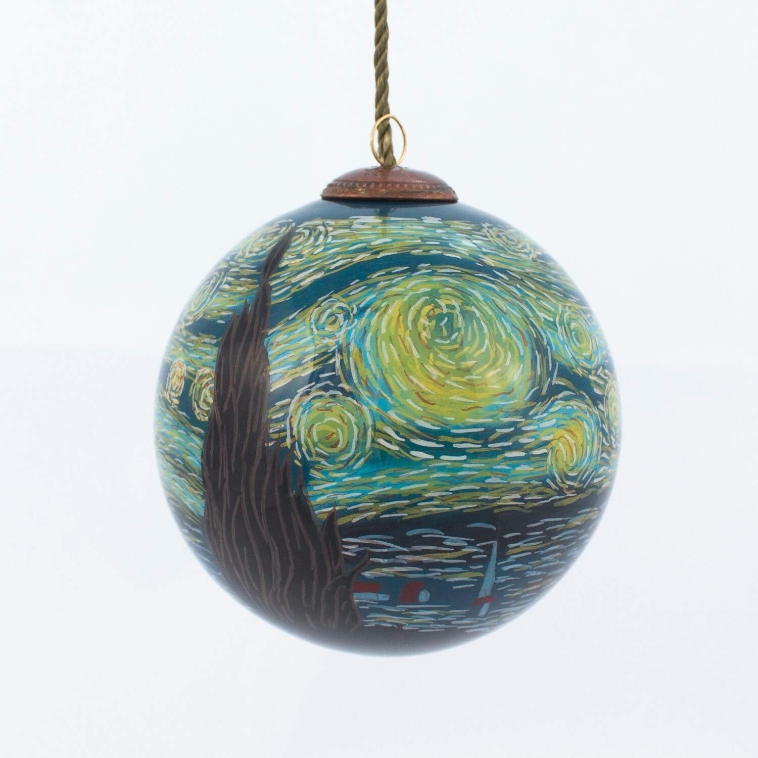 Starry Night' Hand-Painted Glass Ornament Brown Green Yellow Metal Velvet