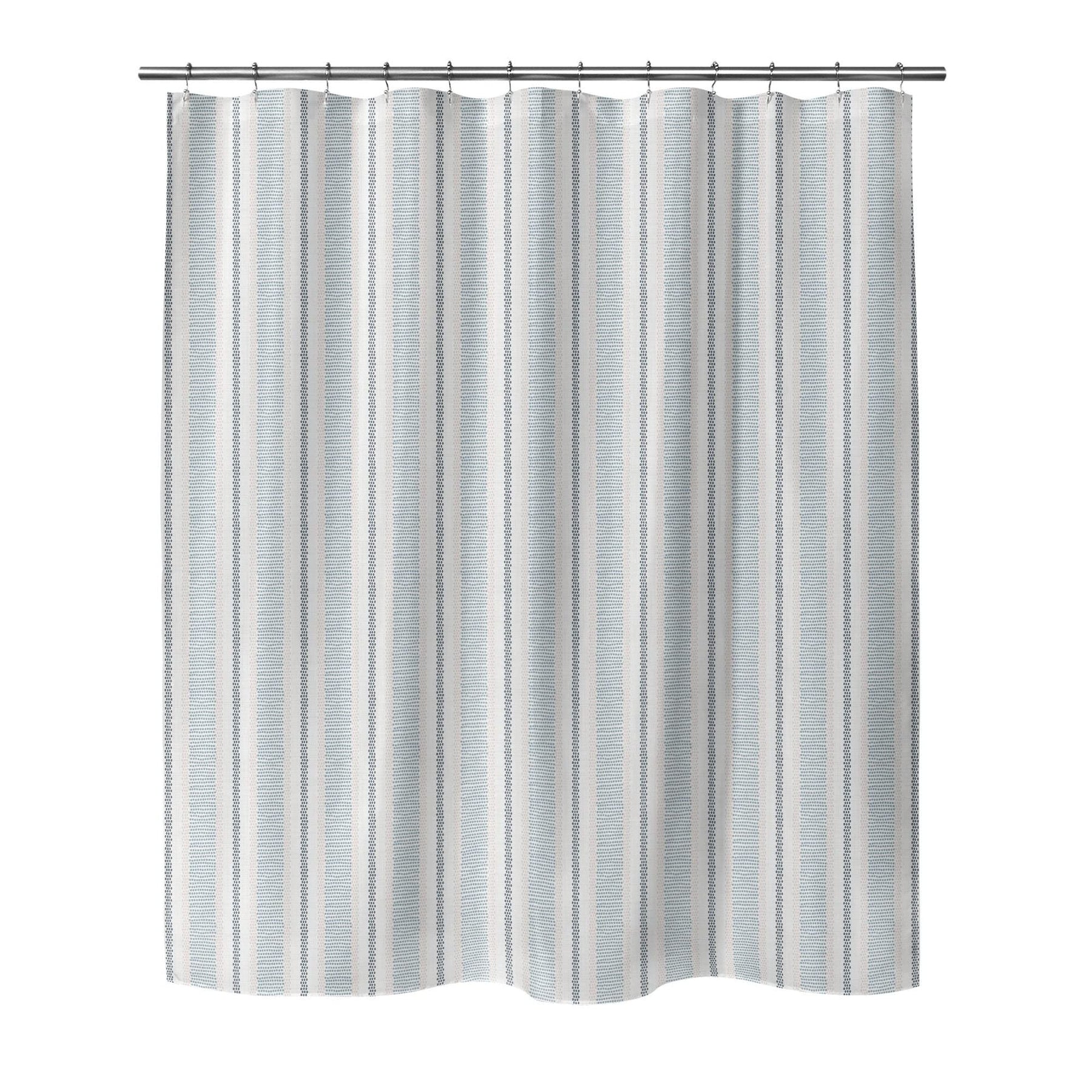 Stripe Dots Denim Shower Curtain Blue Striped Modern Contemporary Polyester | Design/Look : Modern & Contemporary. Material : Polyester. Pattern : Striped. Care instruction : Machine Wash. Color : Blue | Product Size: 0.1 In. L X 71.0 In. W X 74.0 In. H.