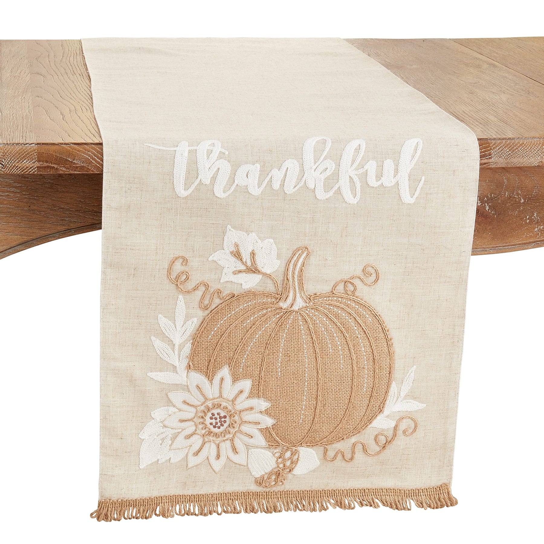 Thankful Pumpkin Design Table Runner 16"x70" Brown Linen Polyester